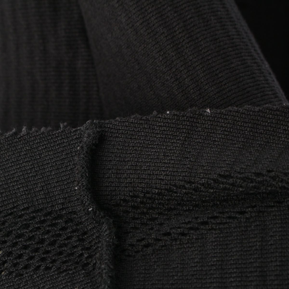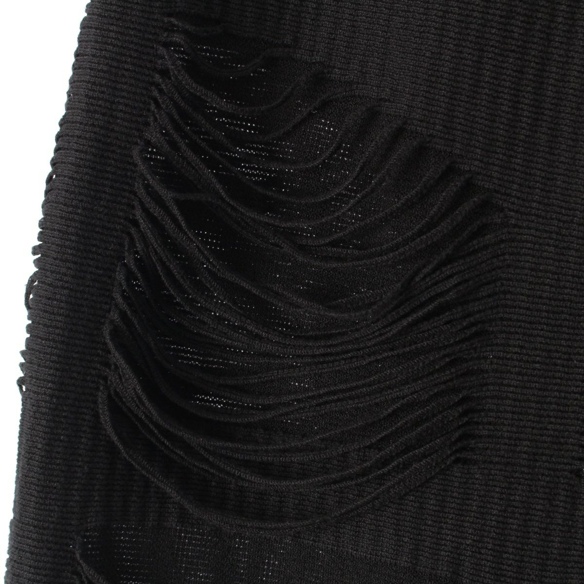 ダメージ箇所: ウエスト・裾・内側に毛玉、フリンジに型崩れ、保管臭のようなニオイ