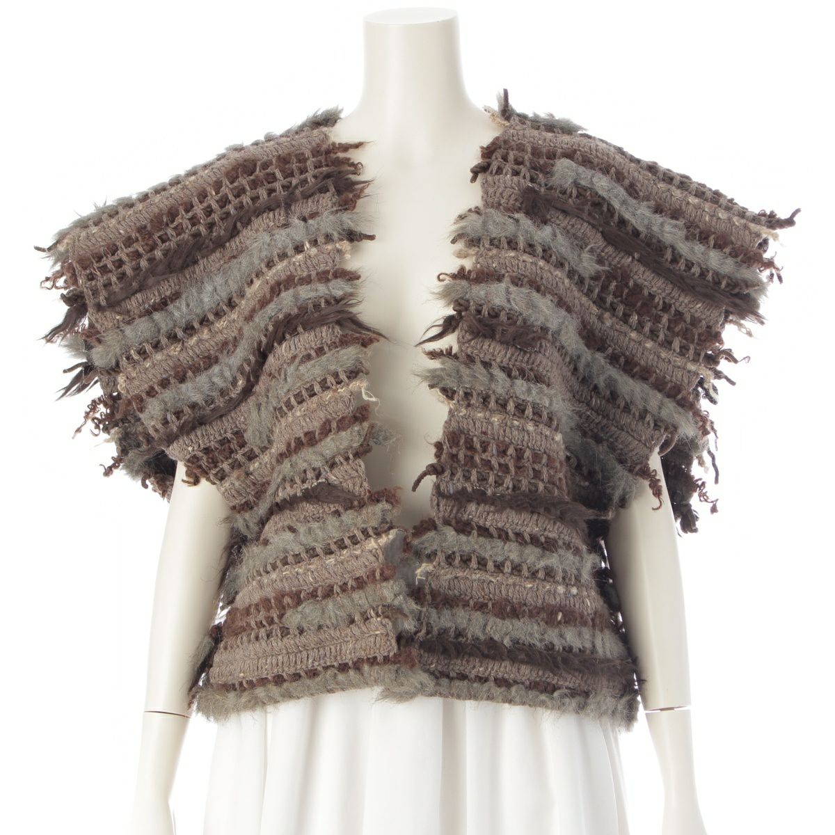 イッセイミヤケ 70s ウール オールスタイル 織 ニット ベスト トップス ナチュラル ブラウン グレー