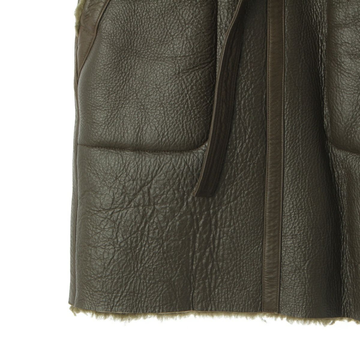 イッセイミヤケ 80s 1984 シープレザー 筆タグ ムートン ショルダー スカート カーキ 9