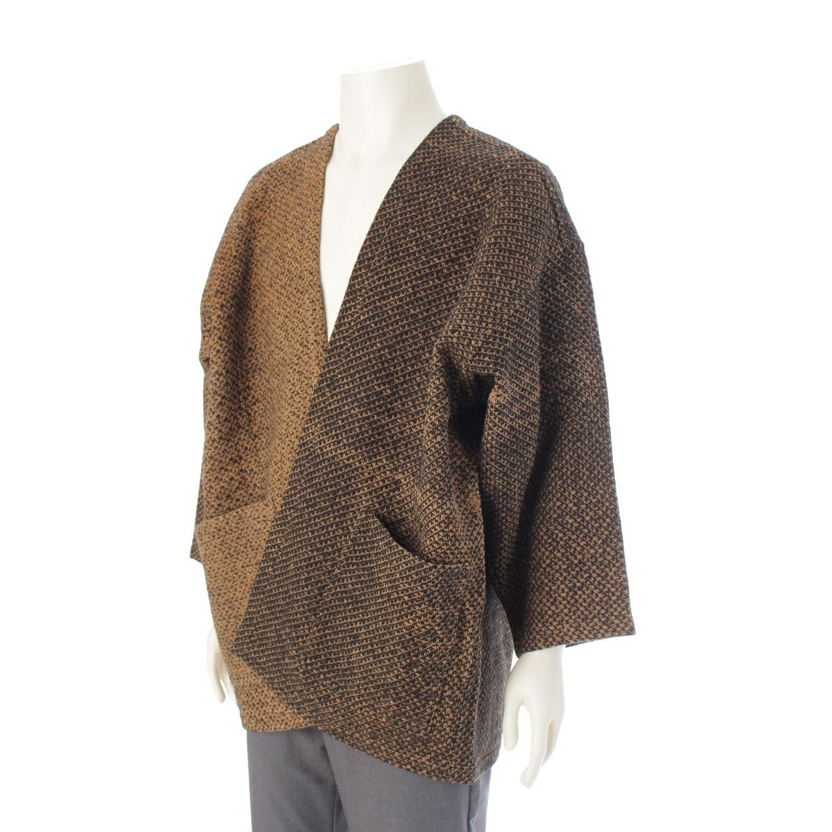 イッセイミヤケ 84年 80s リネン×ウール 羽織 デザイン コート テーラードジャケット ラウン×ブラック系 9