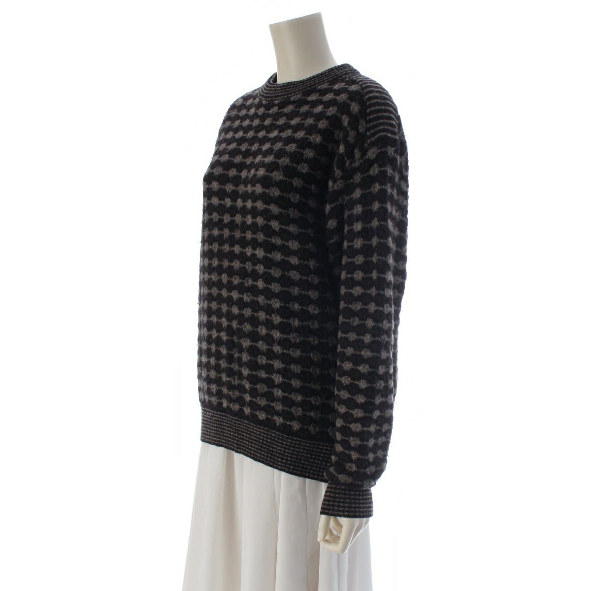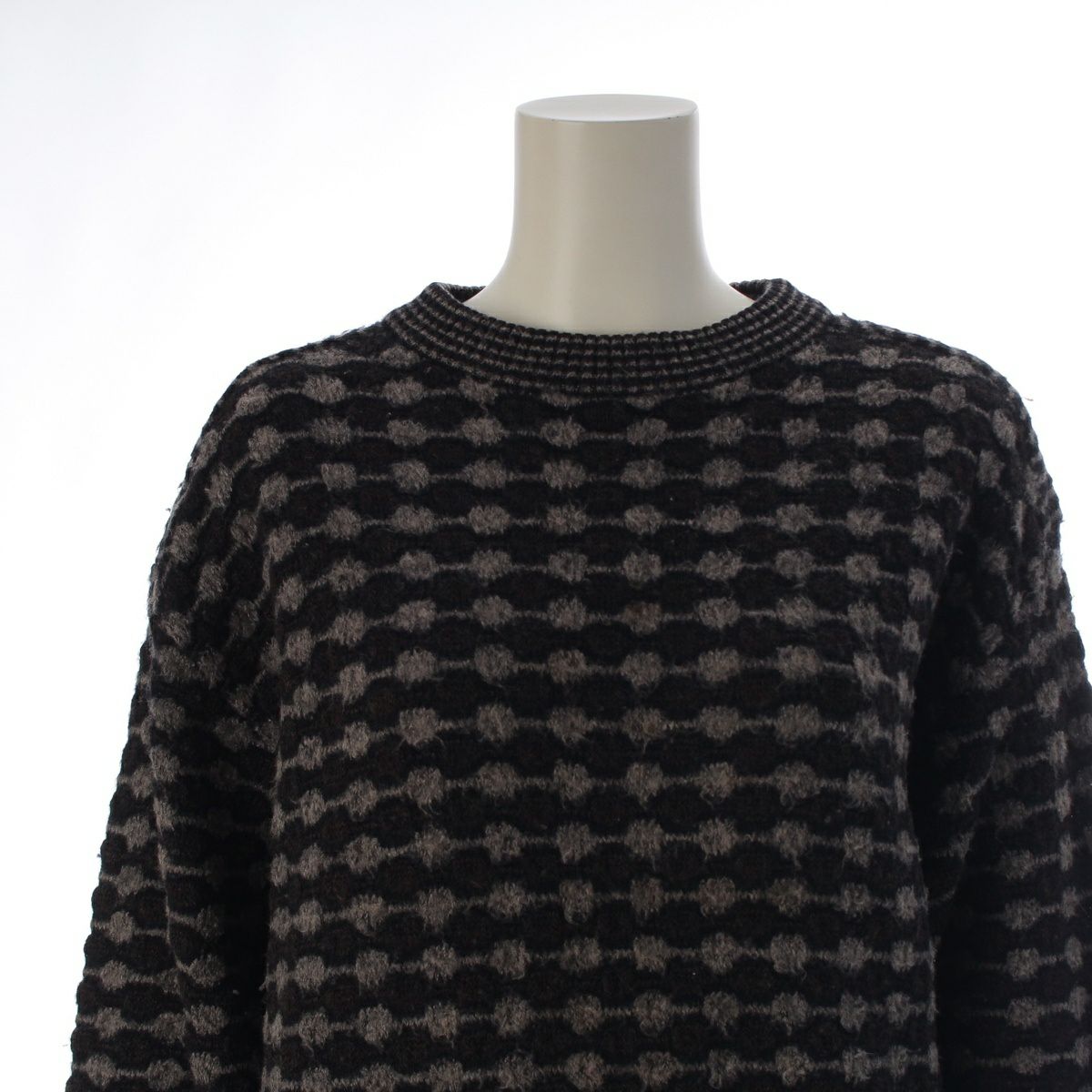 イッセイミヤケ 70-80s ウール オールスタイル 総柄 クルーネック ニット セーター トップス ブラウン系