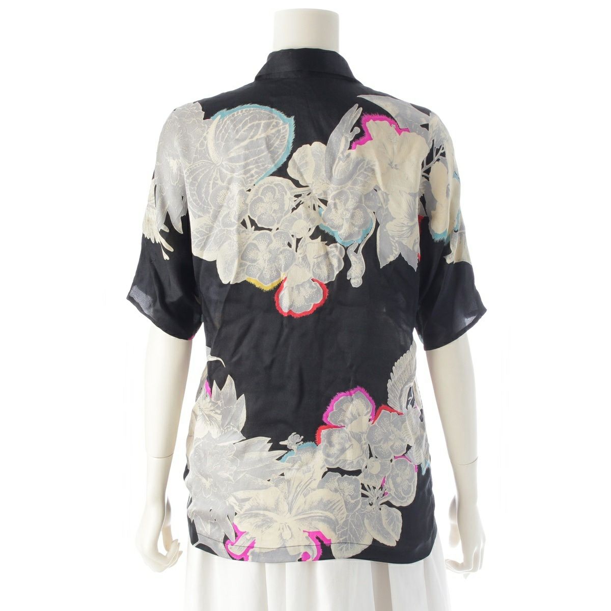 イッセイミヤケ 70s 1979 初期タグ TADANORI YOKOO 横尾忠則グラフィック シルク 花 総柄 半袖シャツ 平面パターン ブラック マルチカラー 9