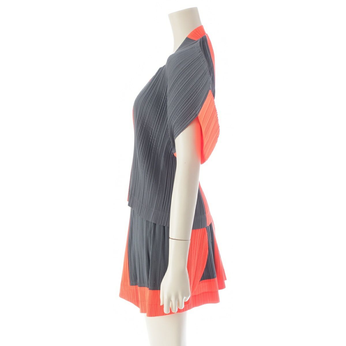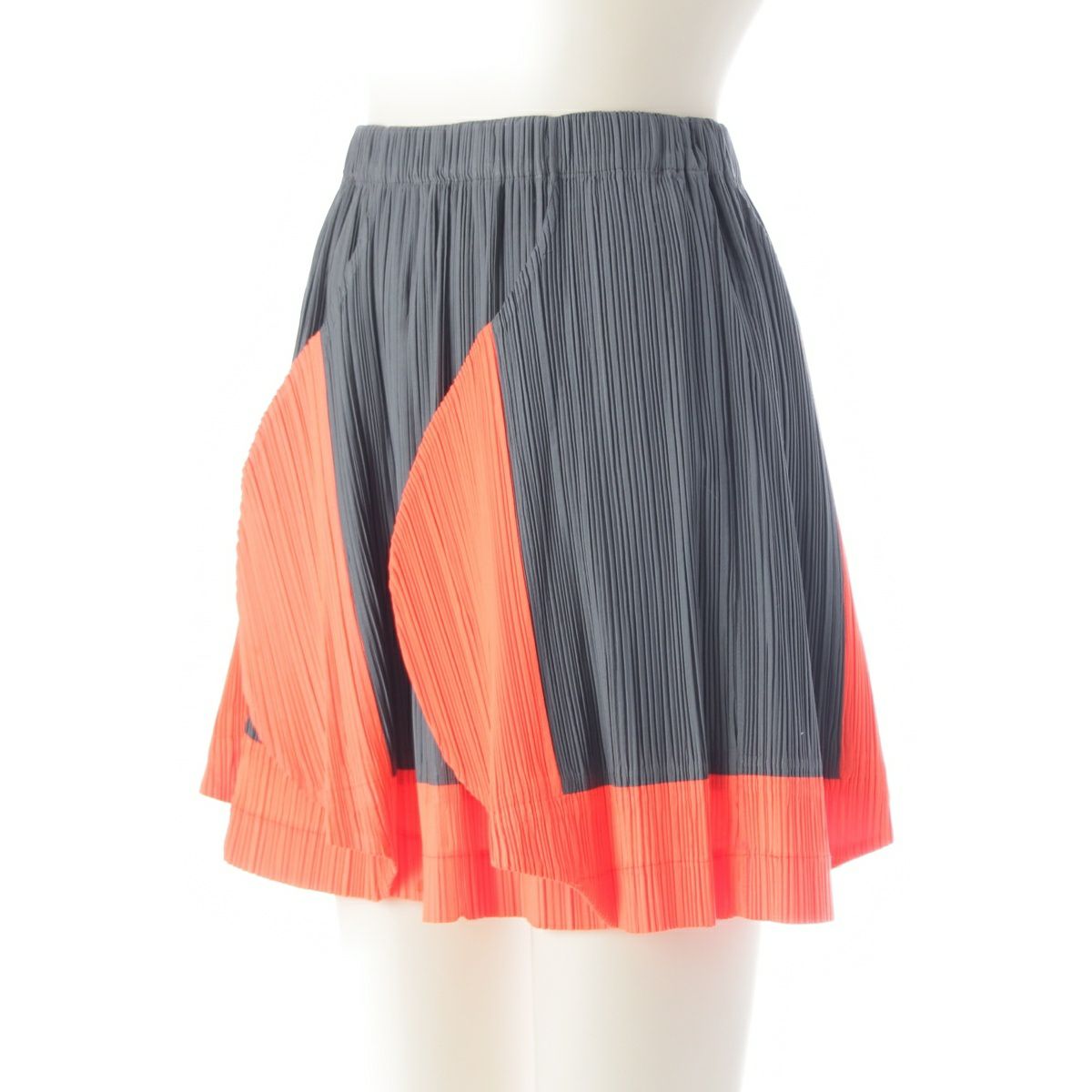 イッセイミヤケ 90s 91SS CURVED PLEATES カーブ プリーツ ラウンド スカートセットアップ オレンジ チャコール M