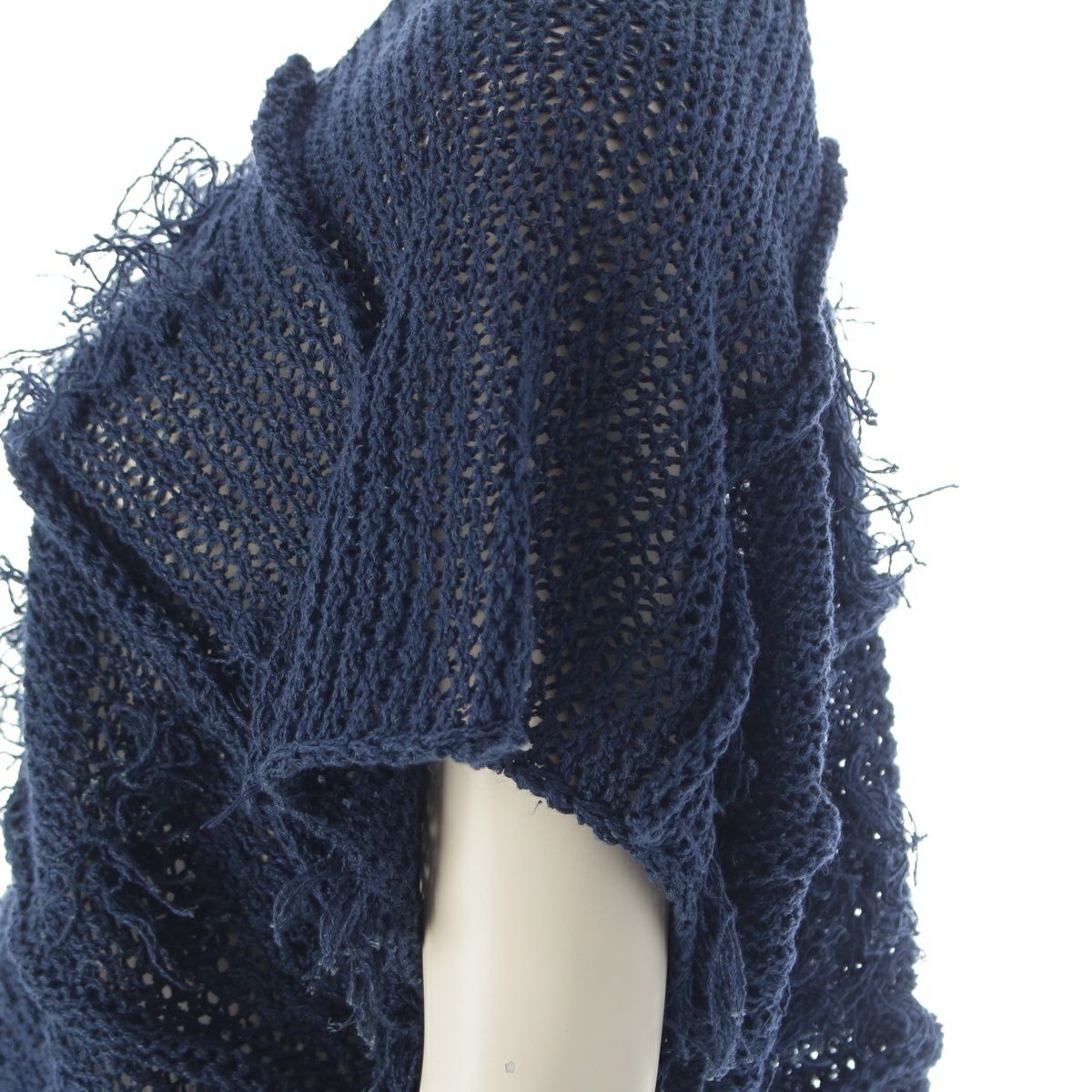 イッセイミヤケ 80s 1981年 麻 筆タグ ノースリーブ フリンジ 変形 トップス ニット ネイビー M