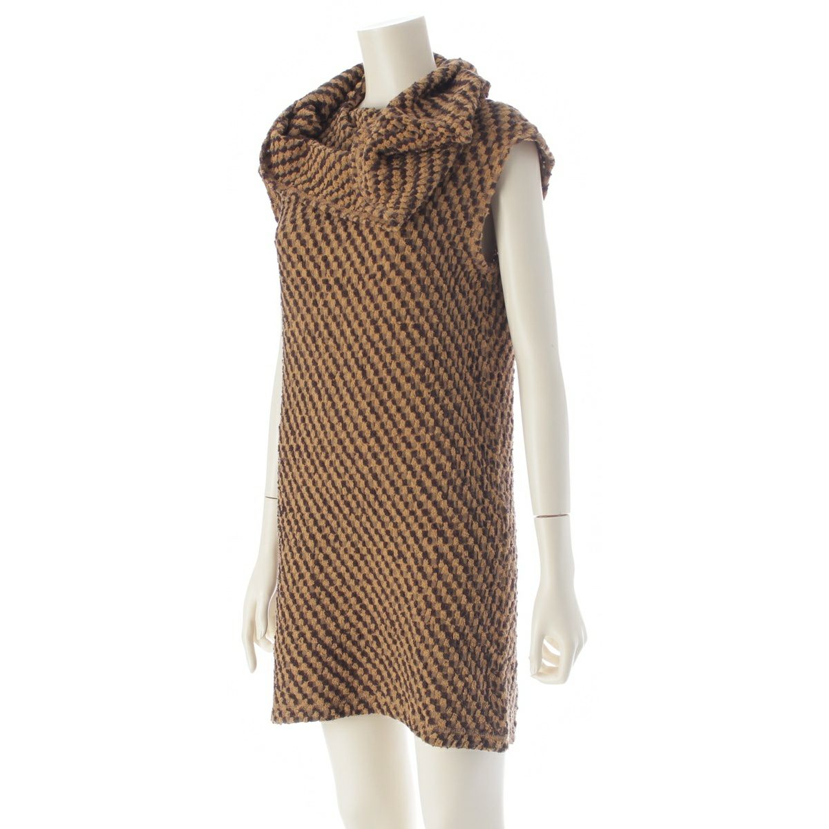 イッセイミヤケ 80s 1984年 コットン 筆タグ 変形 平面 フーデッド ニット ワンピース ブラウン ベージュ 9