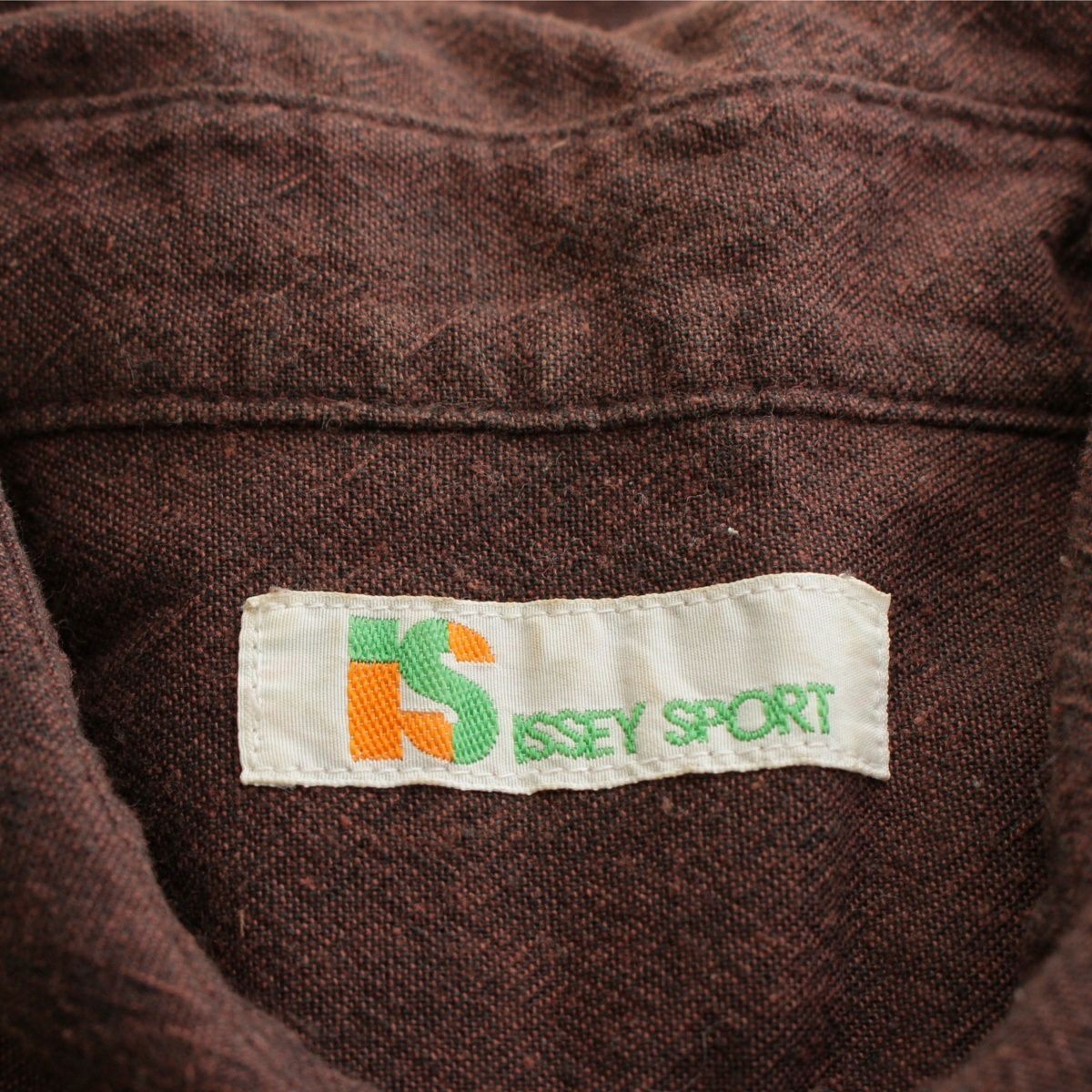 イッセイミヤケ 70-80s 初期タグ スポーツ シェルボタン 開襟 オープンカラー 長袖シャツ トップス ボルドー ブラック系 9