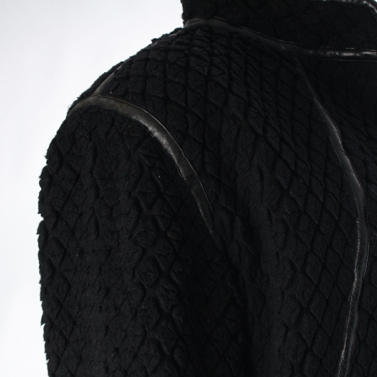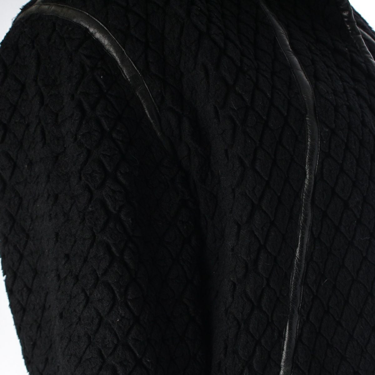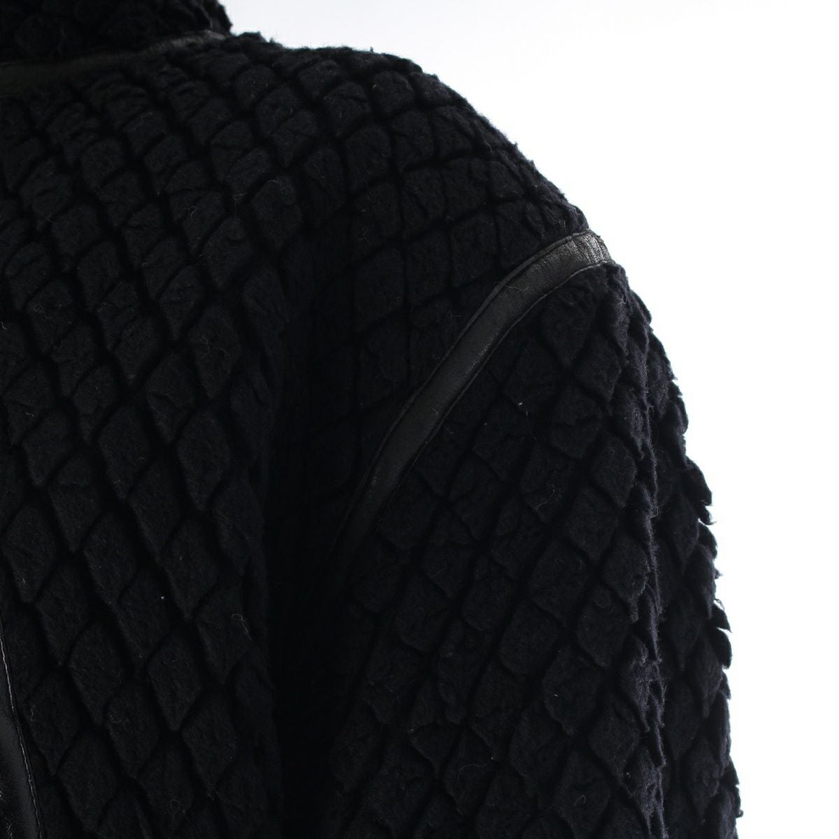 イッセイミヤケ 70s 初期 ウール×ナイロン 単色タグ レザーパイピング カットパイル ノーカラージャケット JH64100 ブラック 9