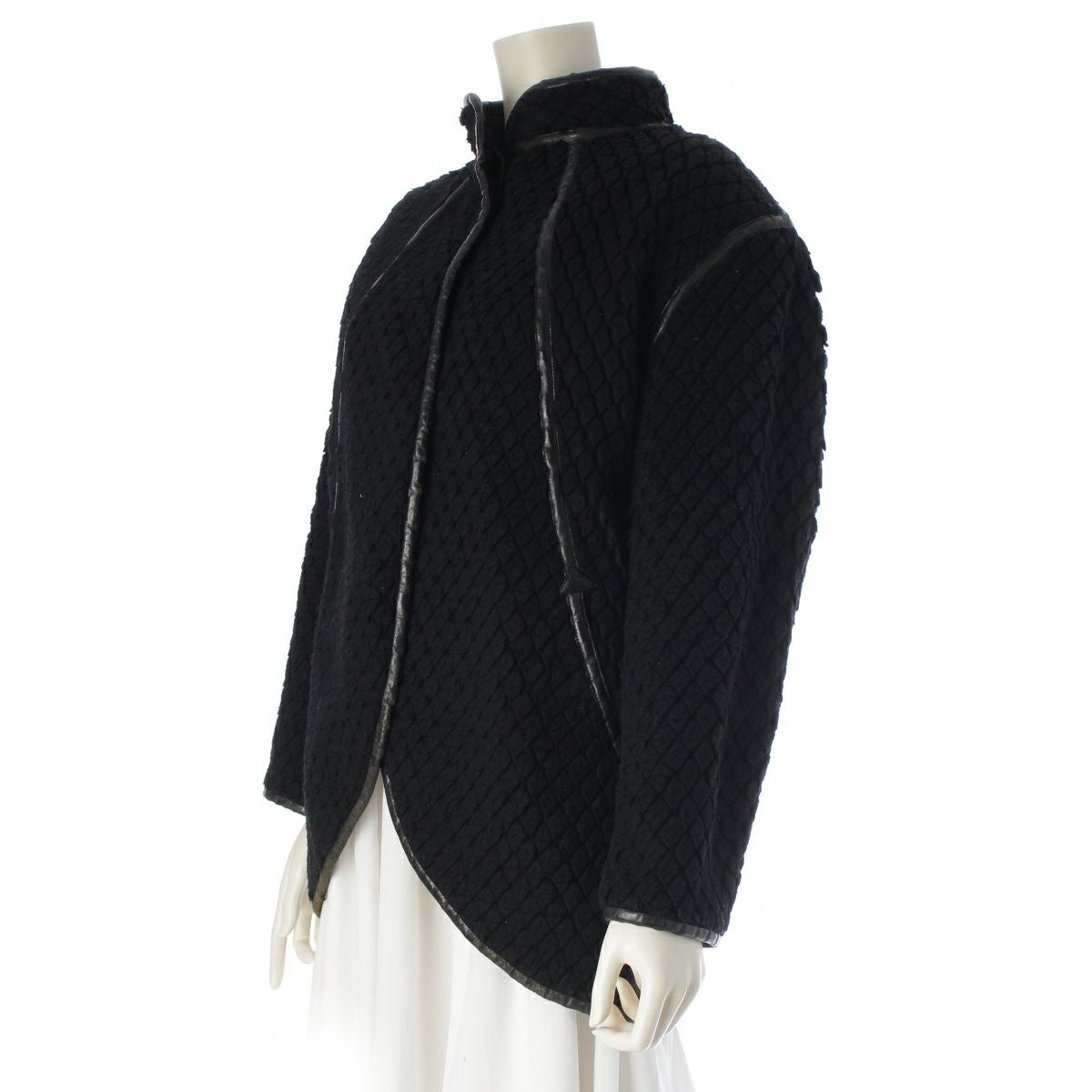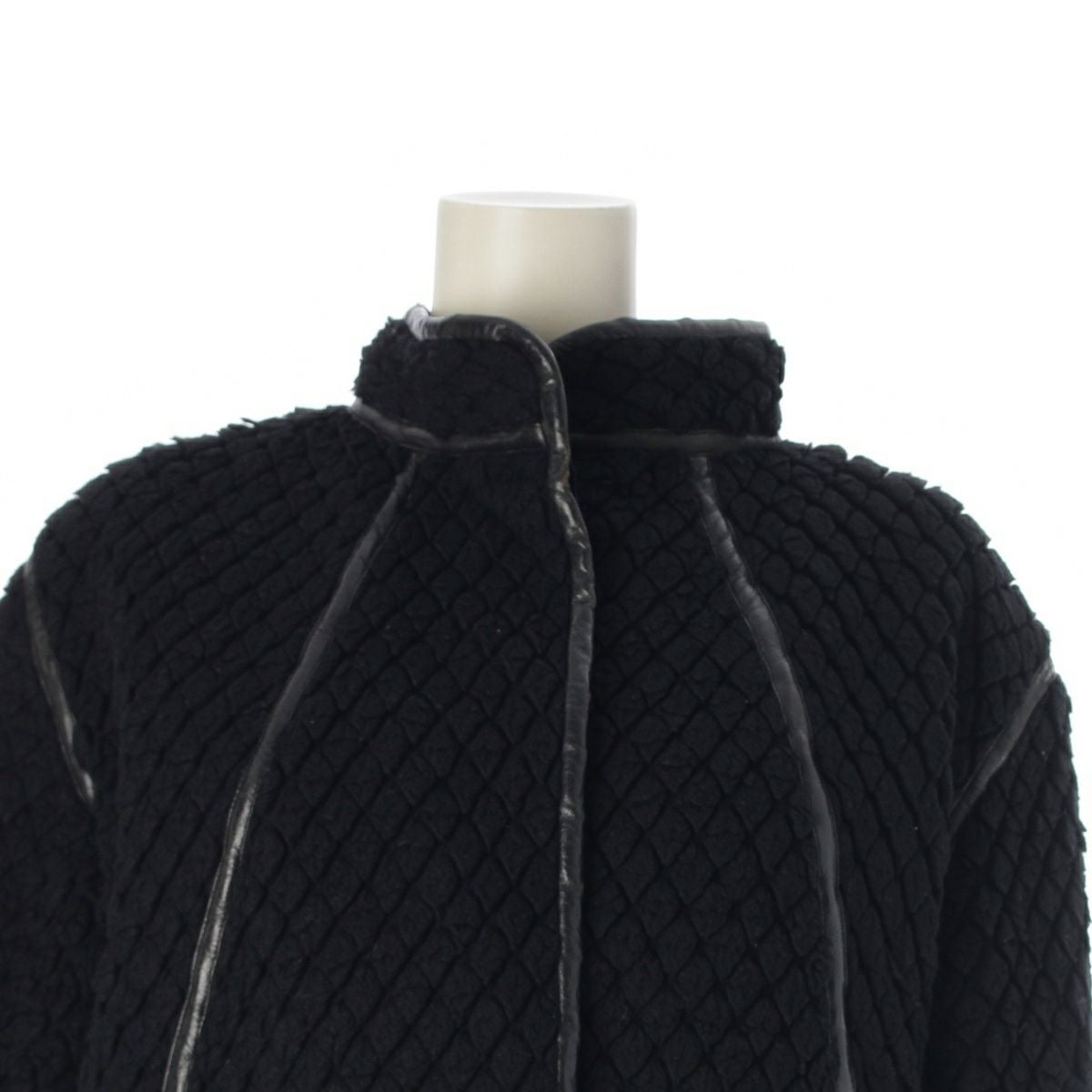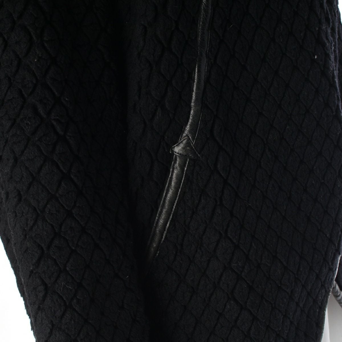 イッセイミヤケ 70s 初期 ウール×ナイロン 単色タグ レザーパイピング カットパイル ノーカラージャケット JH64100 ブラック 9