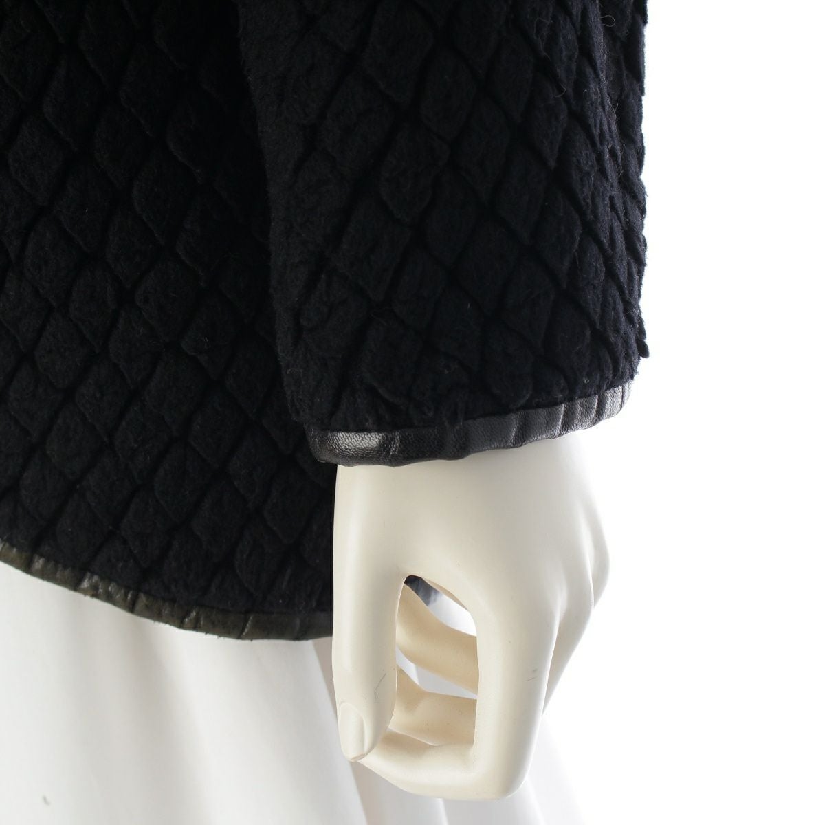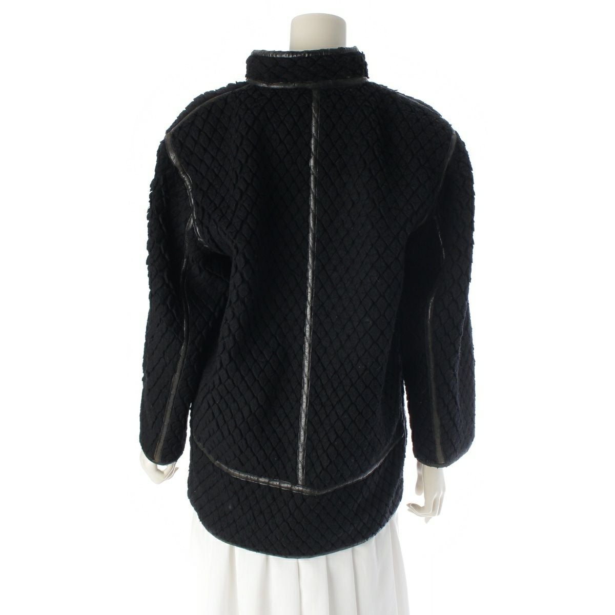 ダメージ箇所: 組成表示タグ:印字薄れ・変色あり 袖口レザーパイピング:破れあり 裾元レザーパイピング:スレあり ※レザーパイピング全体に同様のダメージあり 前身頃首元裏地:汚れあり 袖口裏地:汚れあり 首元:毛羽立ちあり 肩周り:毛羽立ちあり ※全体的に同様の毛羽立ちあり、保管臭のようなニオイ