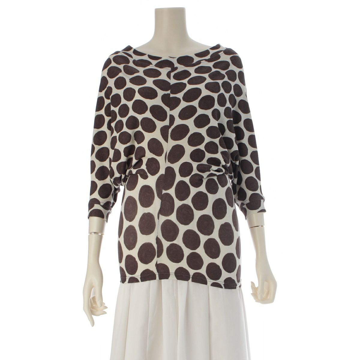 イッセイミヤケ 80s 1989 筆タグ 変形 ドレープ ドット 半袖 カットソー トップス JY11839 ホワイト ブラウン M