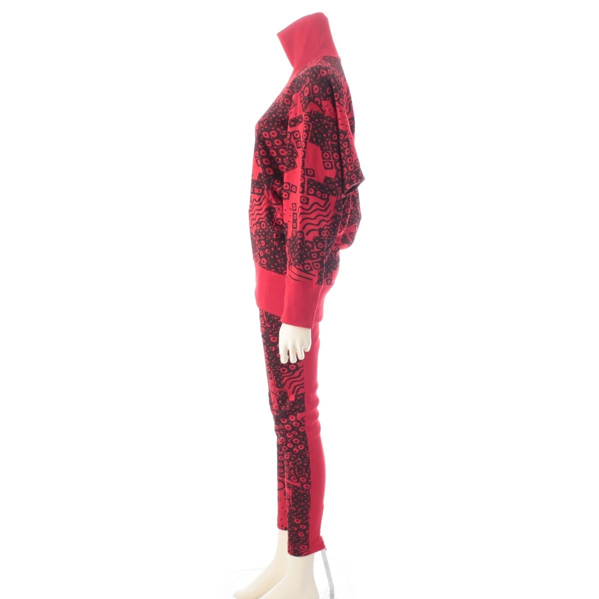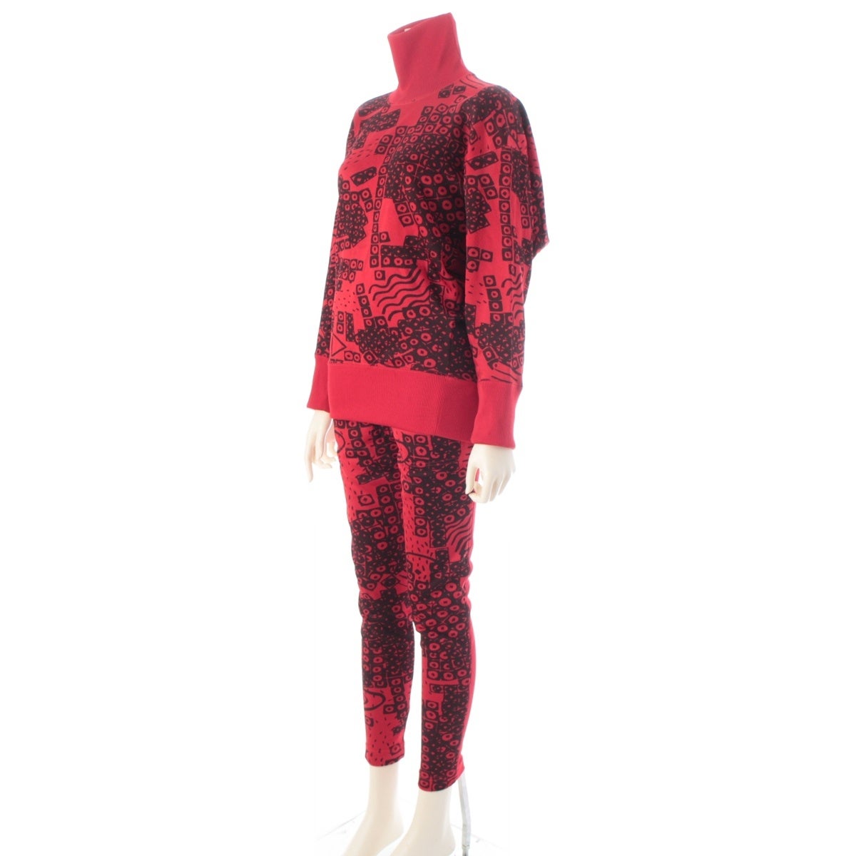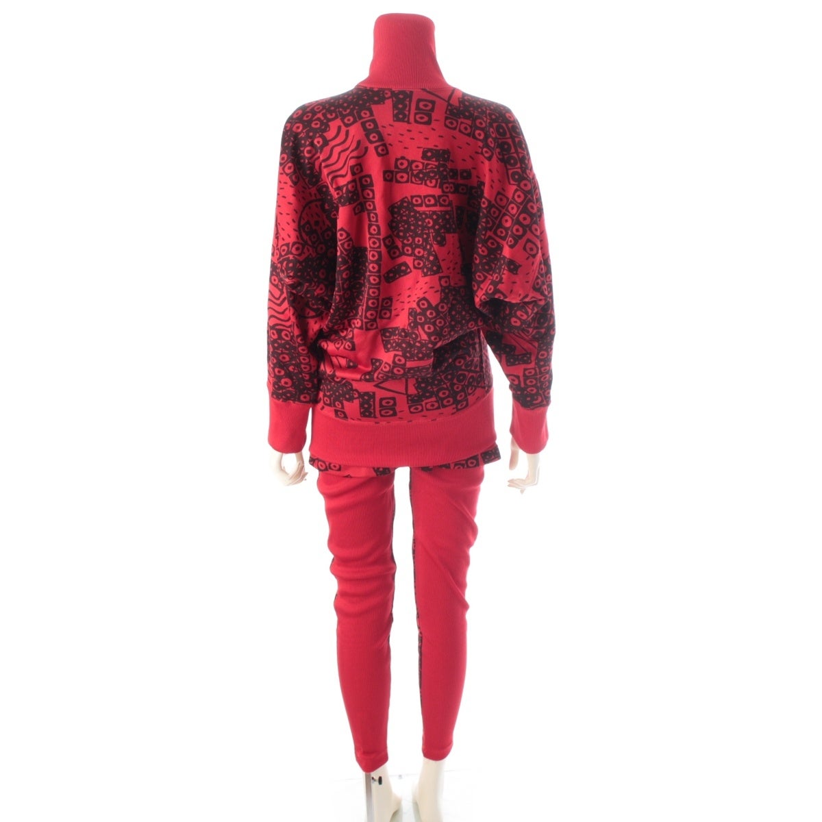 イッセイミヤケ 80s 1986 ドルマンスリーブ 変形 グラフィック 総柄 スウェット スコート パンツセットアップ JY13046 JY43046 レッド 9