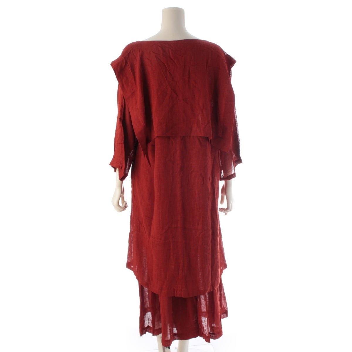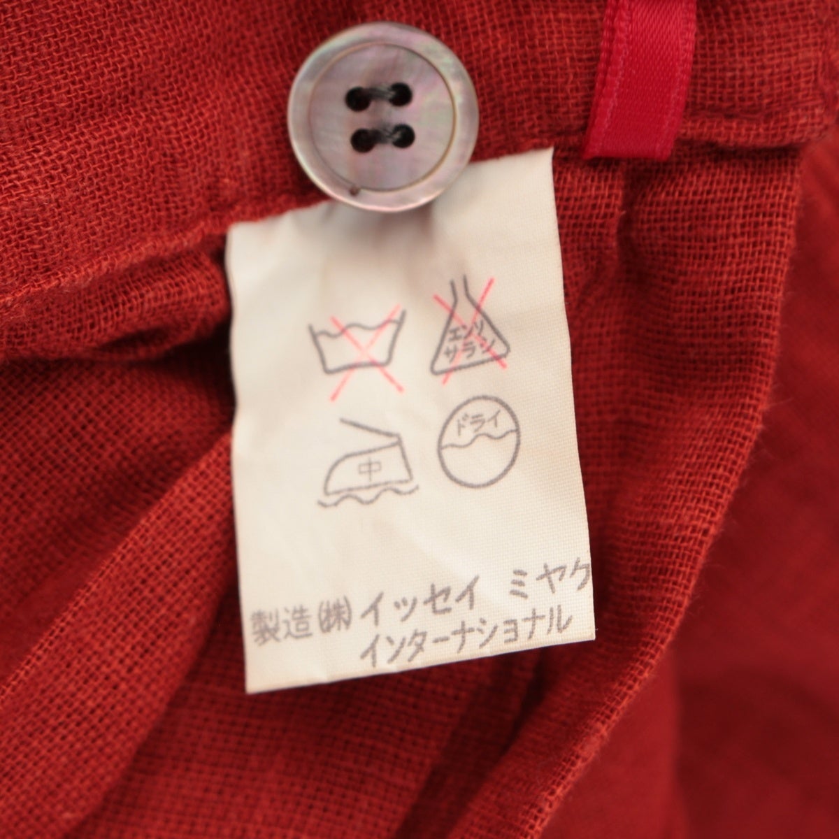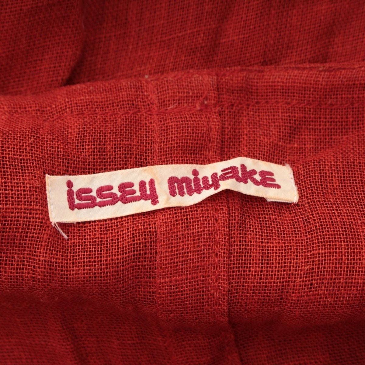 イッセイミヤケ 70s 1979 レーヨン リネン 初期 単色タグ 平面 変形 ワンピース ワイドパンツ パンツセットアップ 朱色 9
