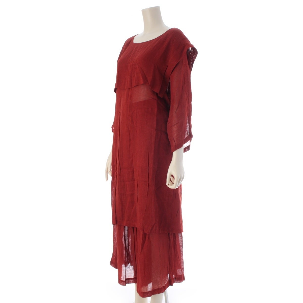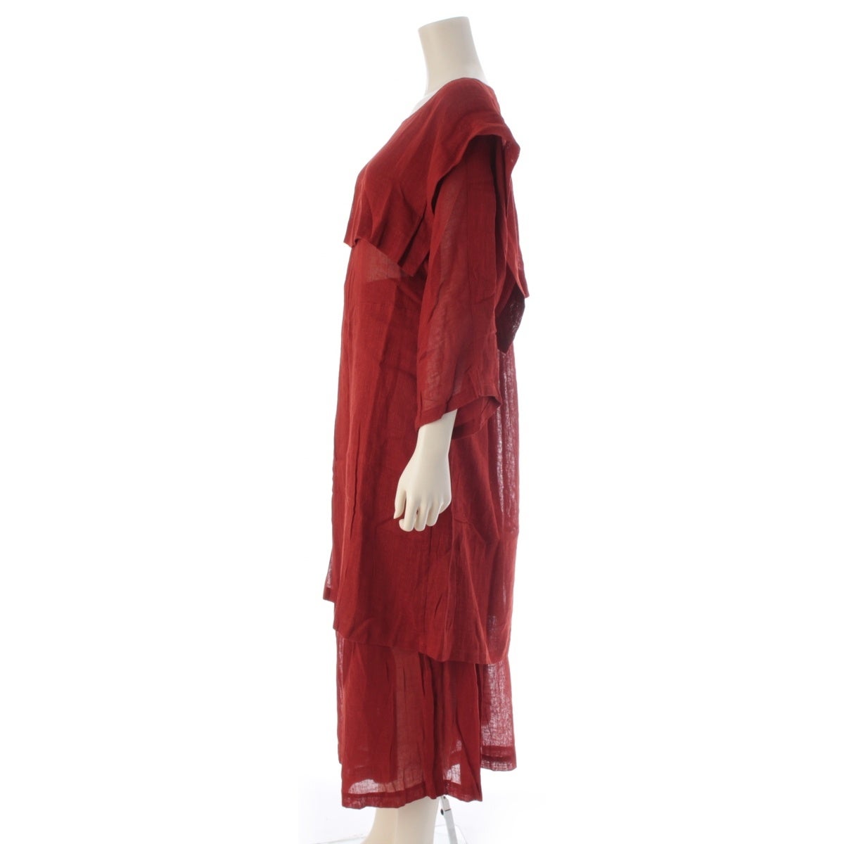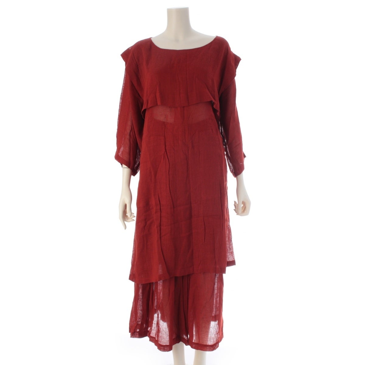 イッセイミヤケ 70s 1979 レーヨン リネン 初期 単色タグ 平面 変形 ワンピース ワイドパンツ パンツセットアップ 朱色 9