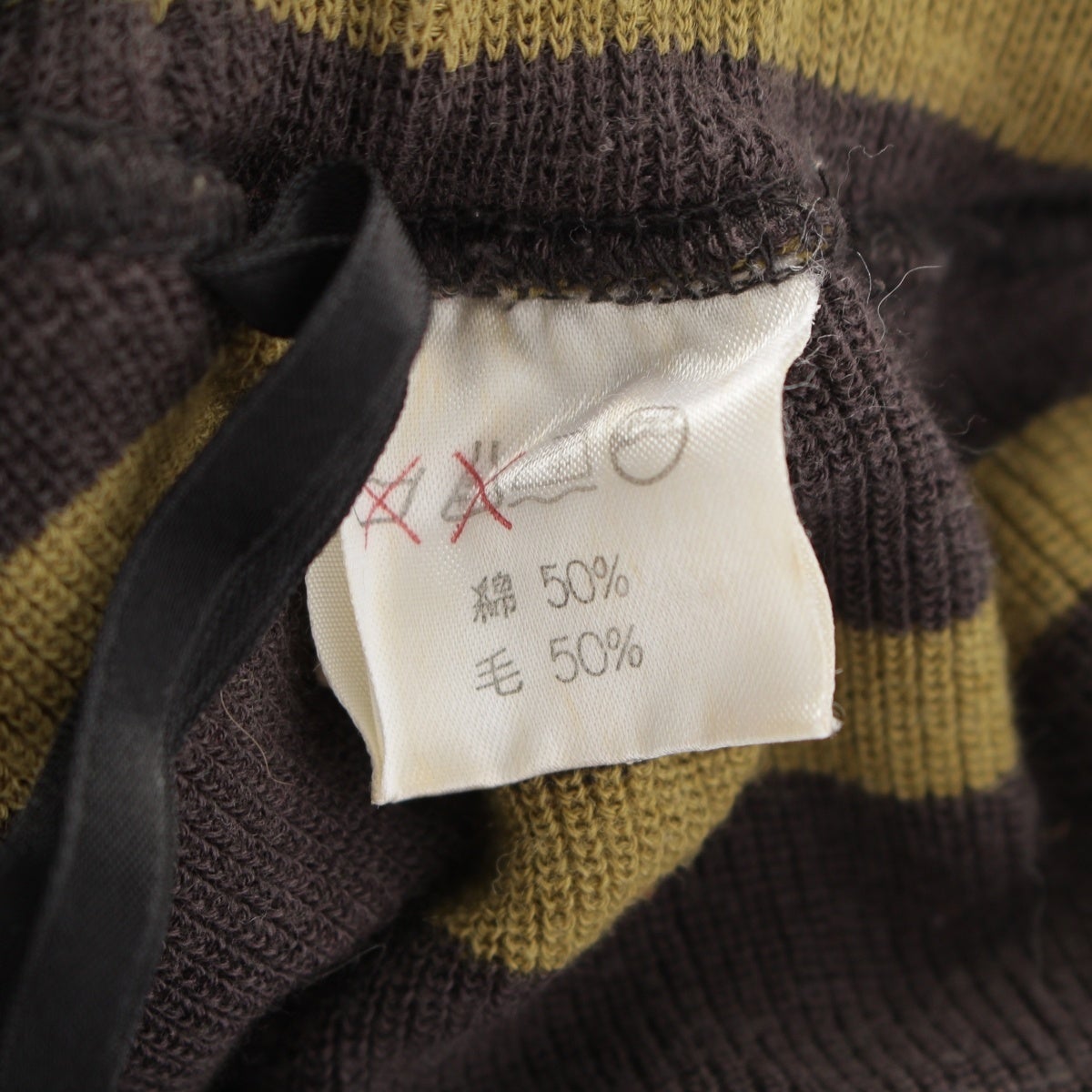 イッセイミヤケ 80s コットン ウール 筆タグ 変形 ボーダー スウェット サルエルパンツ MY43375 グレー グリーン 9