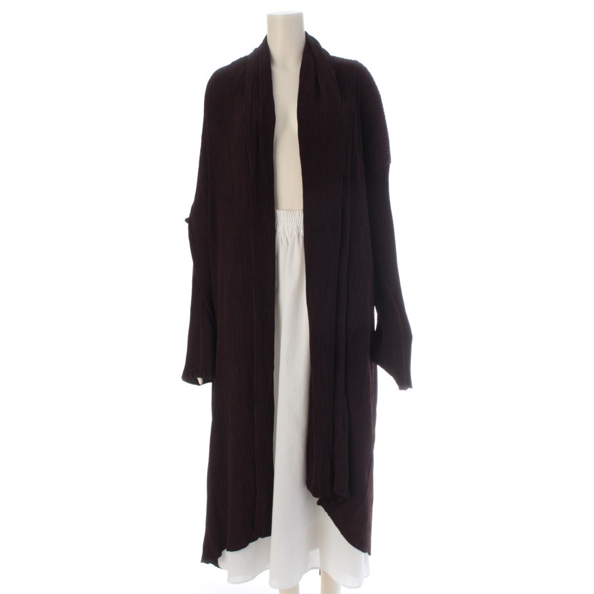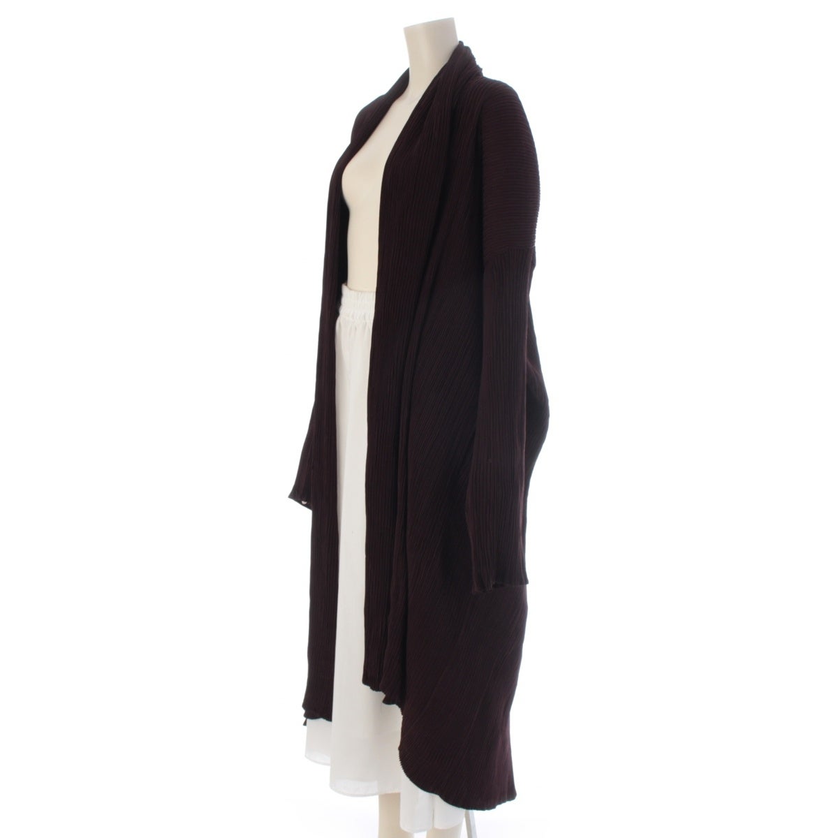 イッセイミヤケ ポリエステル プリーツ ロング カーディガン IM63-FA902 ブラウン L