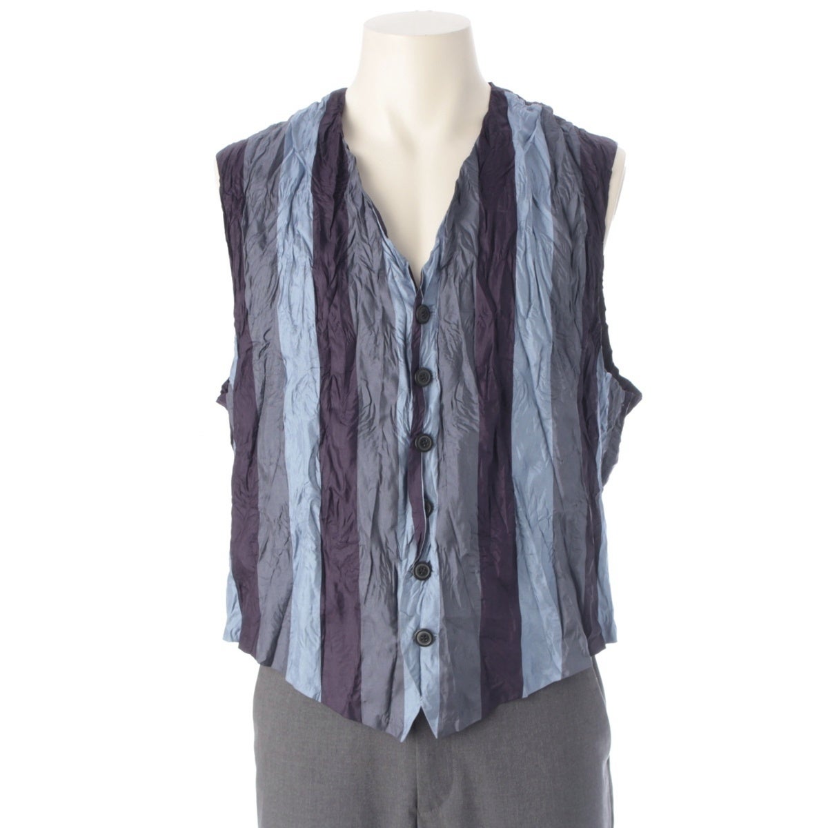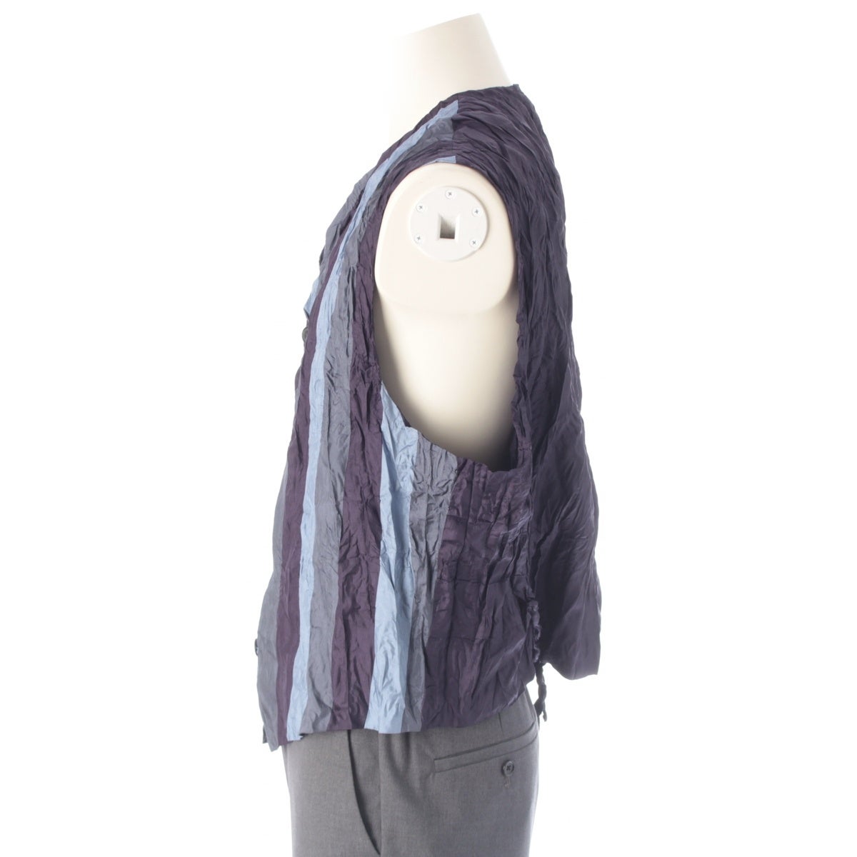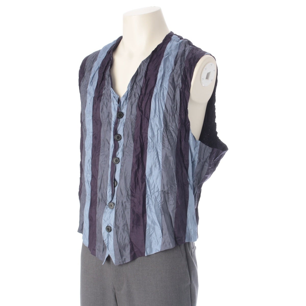 イッセイミヤケ 94SS シワ加工 ストライプ 前開き ベスト トップス IM41-FE904 パープル M