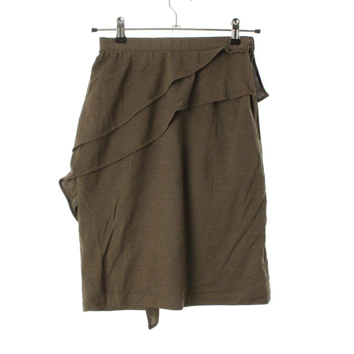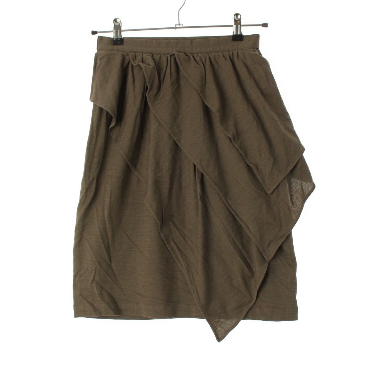 イッセイミヤケ 1982 80s ウール シルク 初期 単色タグ バイアス アシンメトリー スカート ボトムス MH54102 カーキオリーブ系 9