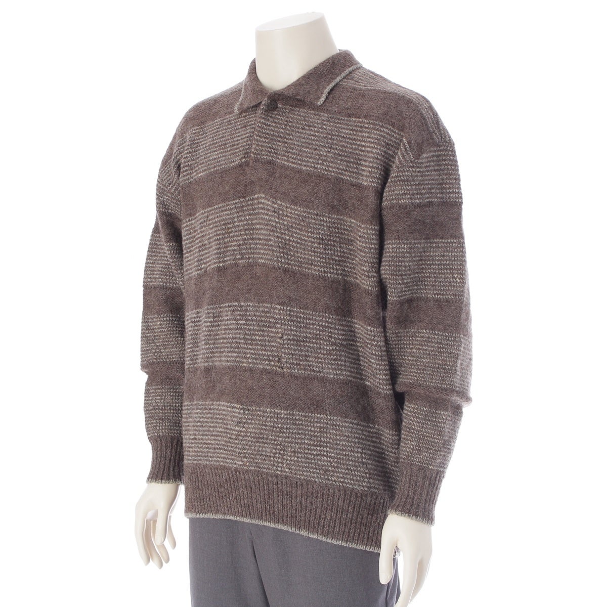 イッセイミヤケ 筆タグ 80s サンプル ヘビー ニット ポロシャツ プルオーバー ニットジャケット ブラウン
