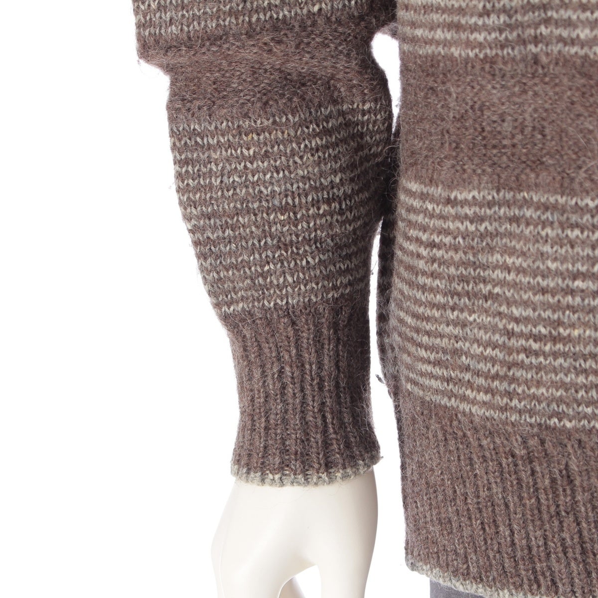 ダメージ箇所: ニオイ:保管臭 タグ:不鮮明 前身頃中央:穴あきあり 肩上:毛羽立ちあり、