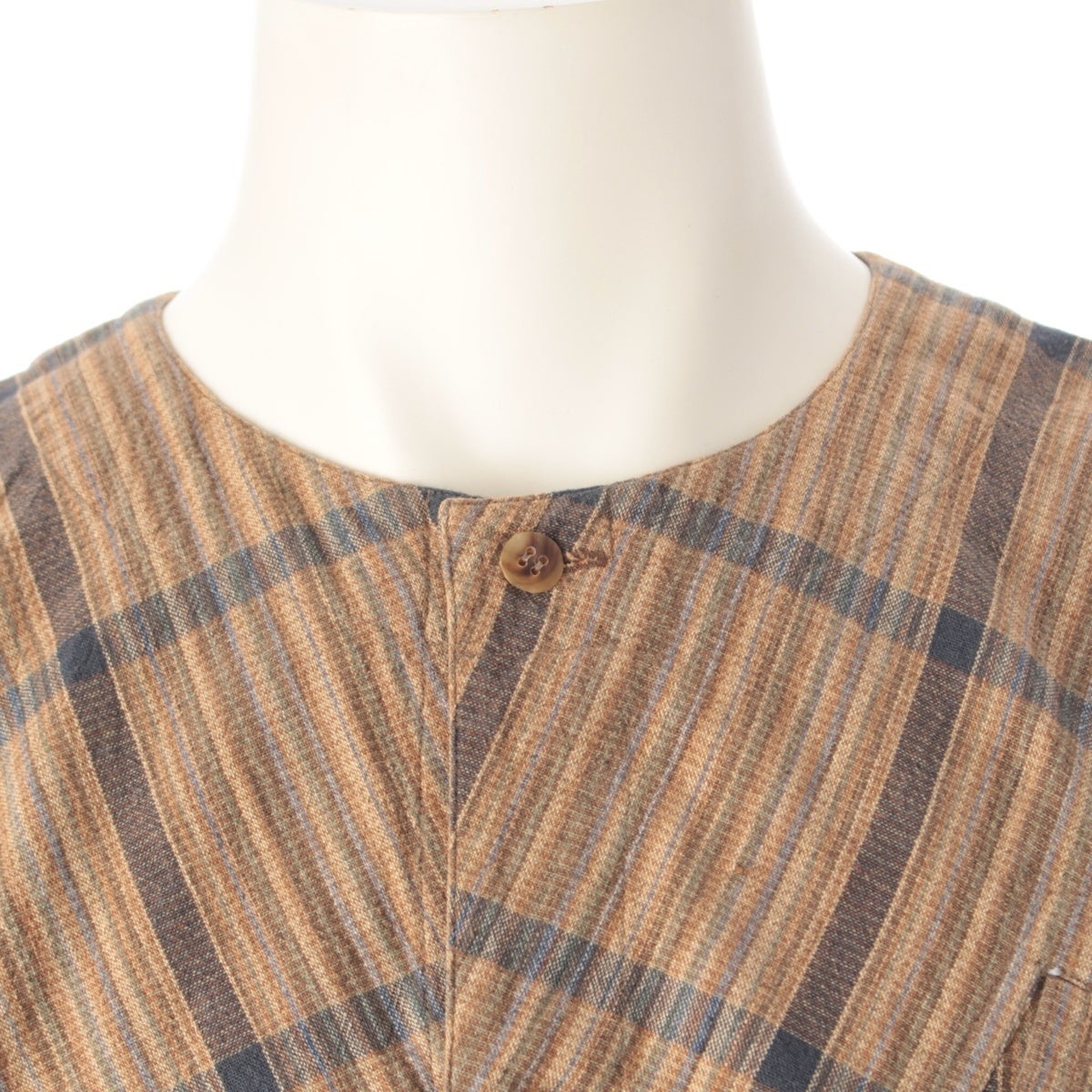 イッセイミヤケ 80s 筆タグ ノーカラー チェック 絣 変型 プルオーバー トップス マルチカラー