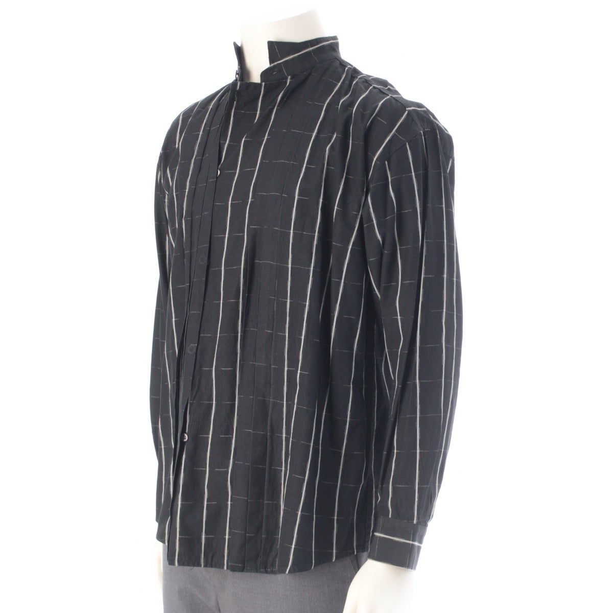 イッセイミヤケ 80s 1984 筆タグ 衿 変型 絣 長袖シャツ トップス LG14584 ブラック M