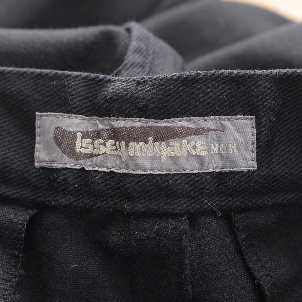 イッセイミヤケ 80s 1984 コットン 筆タグ カツラギ 変型 ワイド テーパード パンツ ボトムス LG44254 ネイビー M