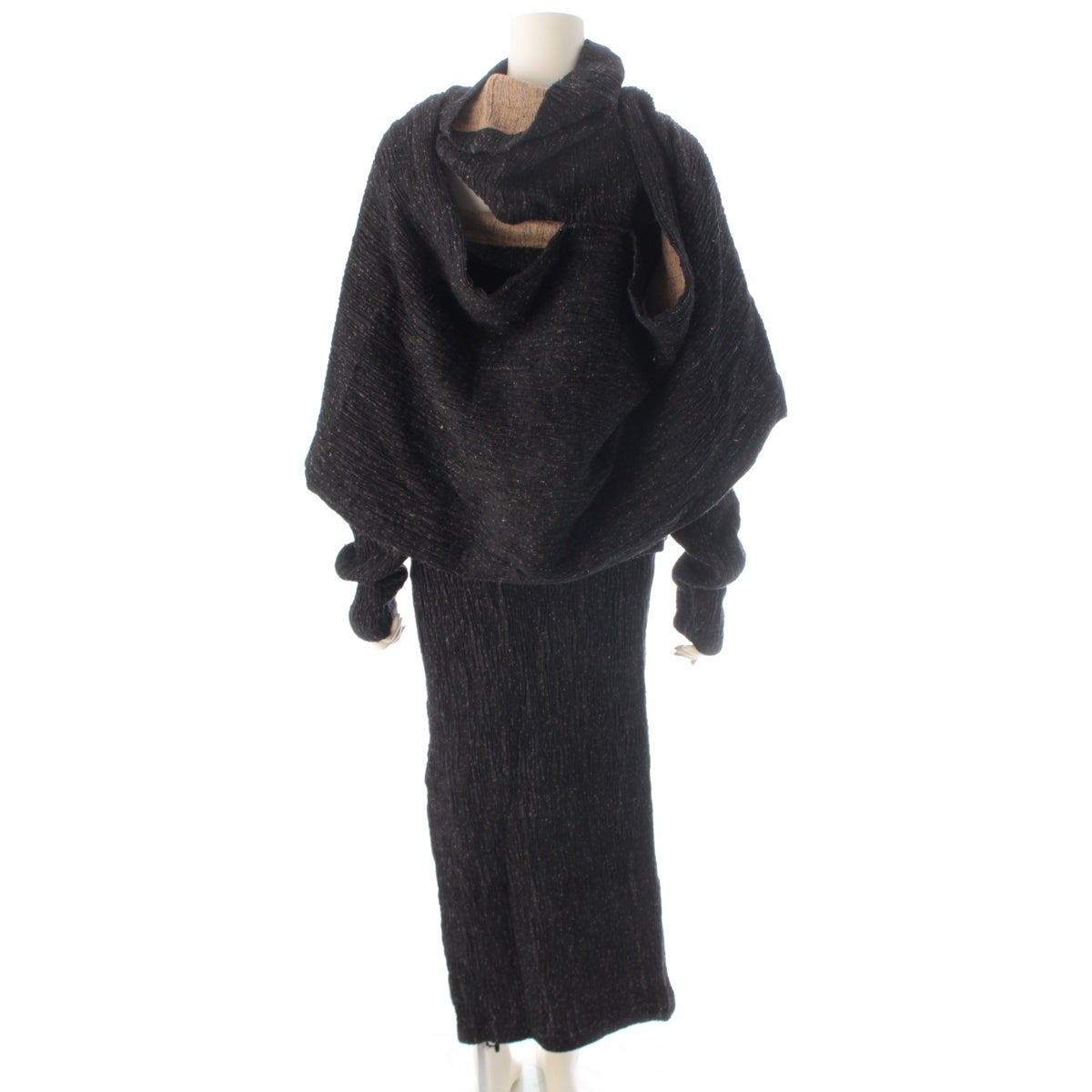 イッセイミヤケ 80s 198 シルク コットン ナイロン 筆タグ 袈裟 デザイン トップス スカート セットアップ 3ピース ブラック 9