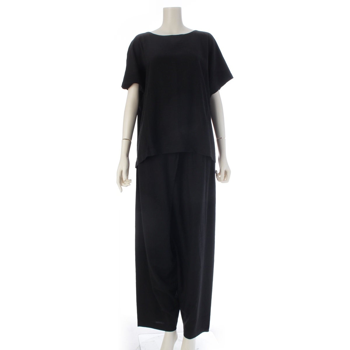 イッセイミヤケ 80s ペルマネンテ レーヨン 麻 変形 パンツセットアップ Tシャツ サルエル トップス ボトムス ブラック M