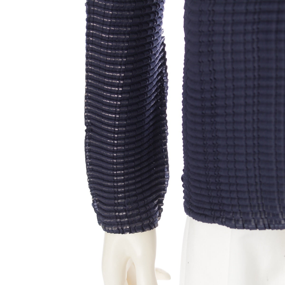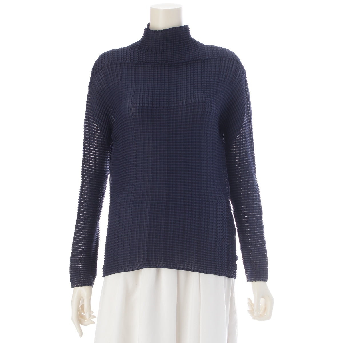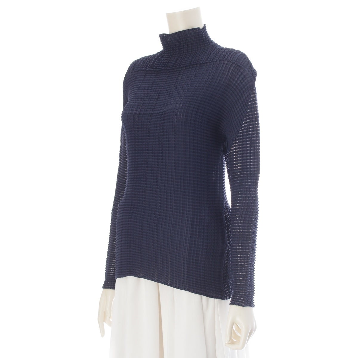 イッセイミヤケ プリーツ ワッフル ハイネック 長袖 カットソー トップス IM21FJ627 ネイビー 2