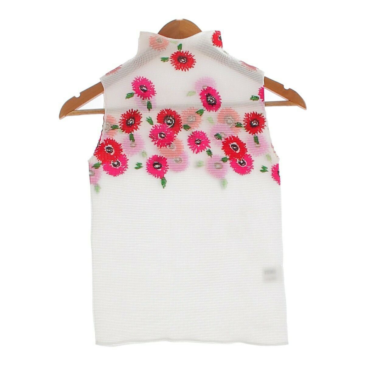 ミー イッセイミヤケ 花柄 プリーツ ハイネック ノースリーブ カットソー トップス MI61FR427 ホワイト【中古】【正規品保証】