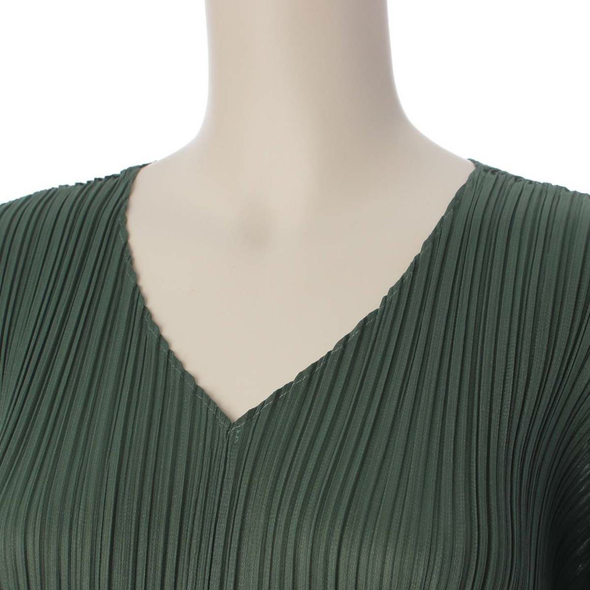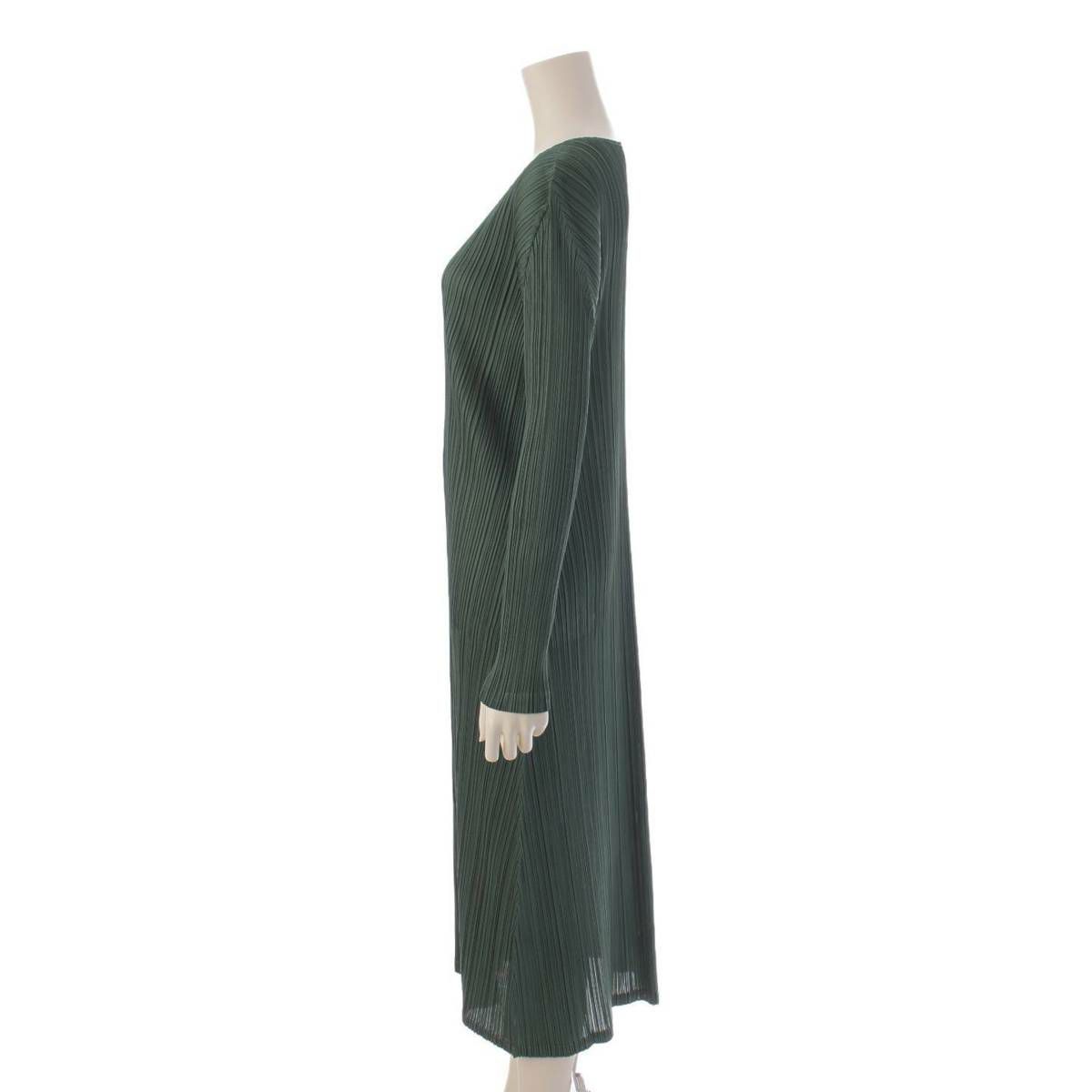 イッセイミヤケ Issey miyake プリーツプリーズ 23AW Vネック 長袖 ロングワンピース ドレス PP33JH167 グリーン 5