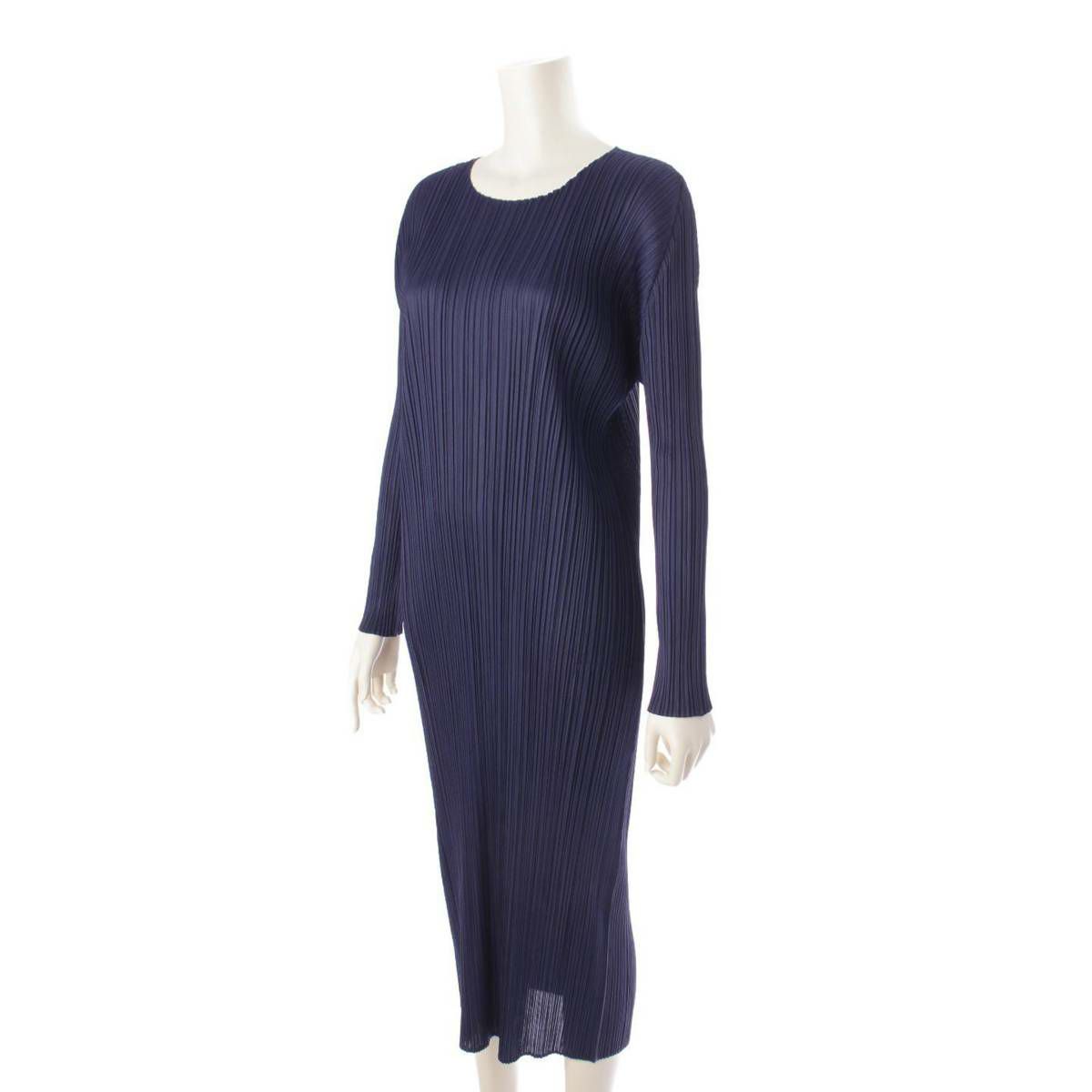 イッセイミヤケ Issey miyake プリーツプリーズ 23AW クルーネック ロングワンピース PP33JH563 ネイビー 5