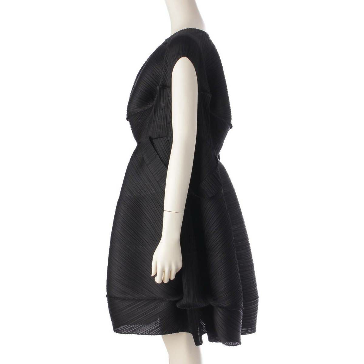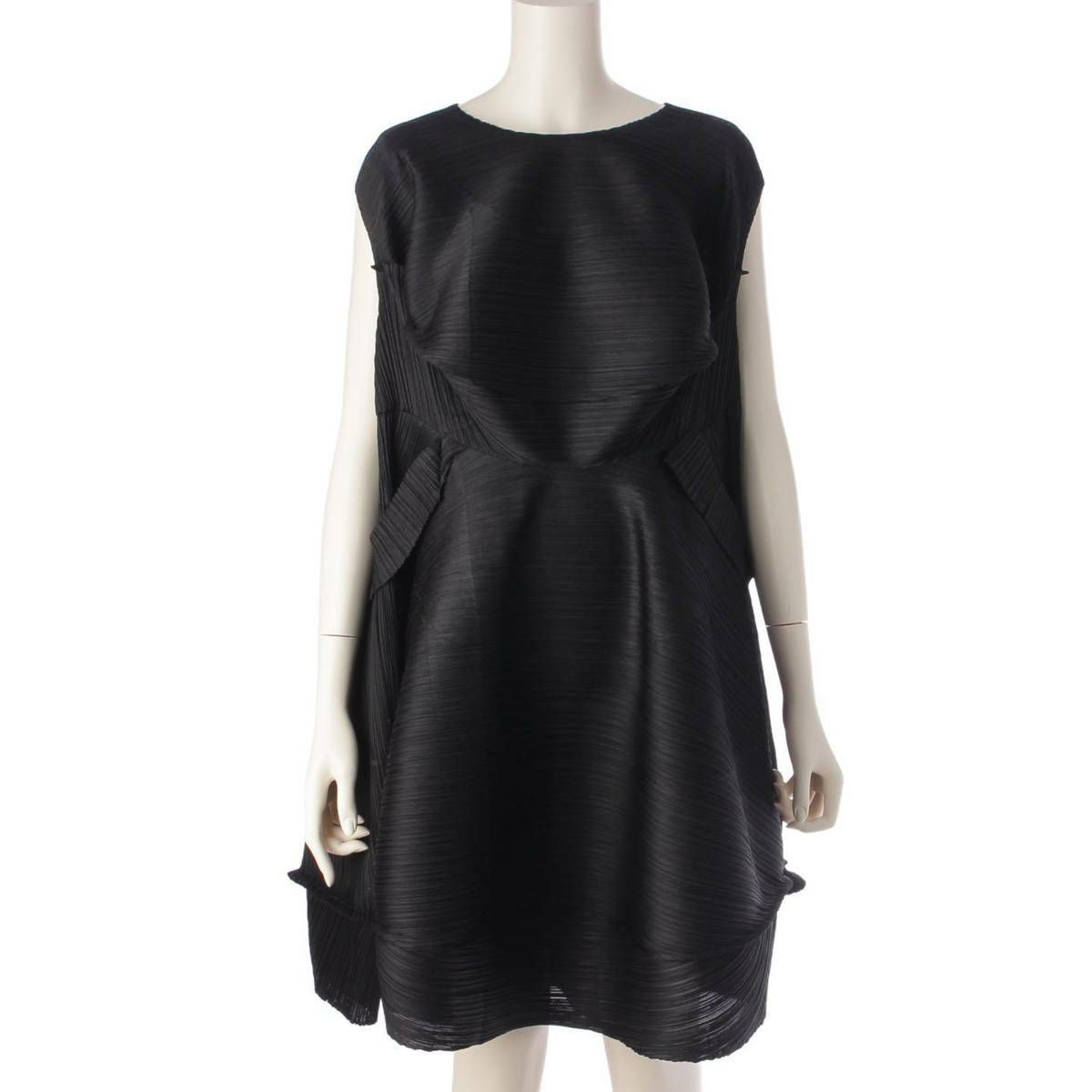 イッセイミヤケ Issey miyake ノースリーブ Uネック 変形 立体 ミニ ワンピース チュニック PP63-JH641 ブラック 3