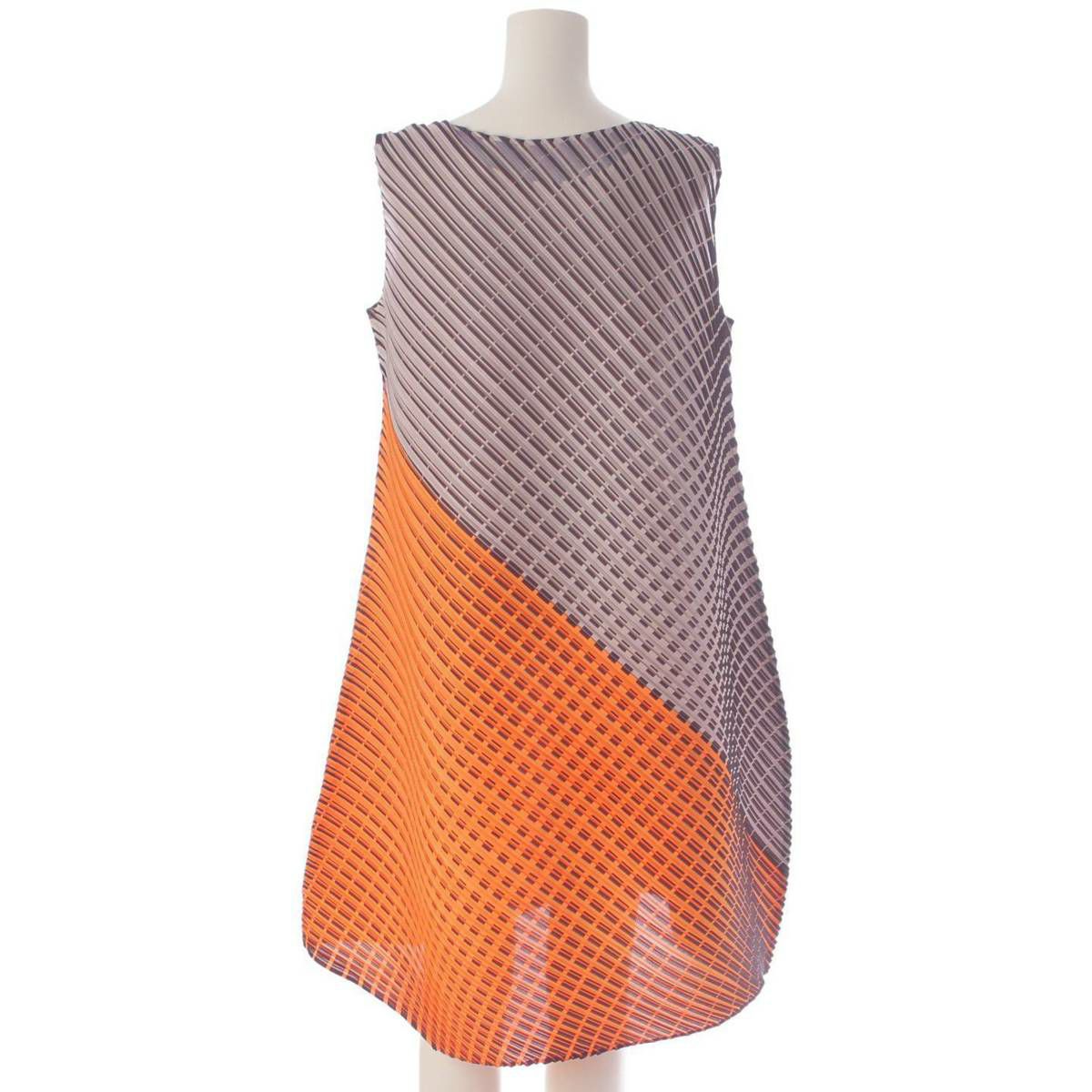 イッセイミヤケ Issey miyake プリーツプリーズ 斜めプリーツ ノースリーブ ワンピース PP71-JH556 グレー 3