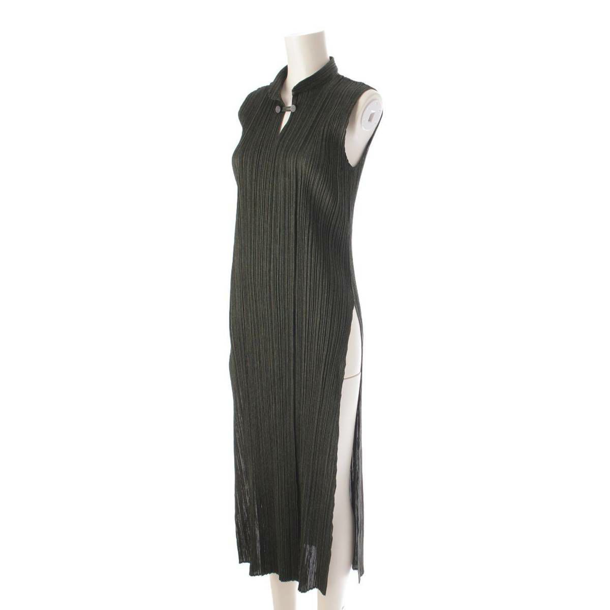 イッセイミヤケ Issey miyake チャイナドレス風 ノースリーブ ワンピース PP63‐JH146 グリーン 4