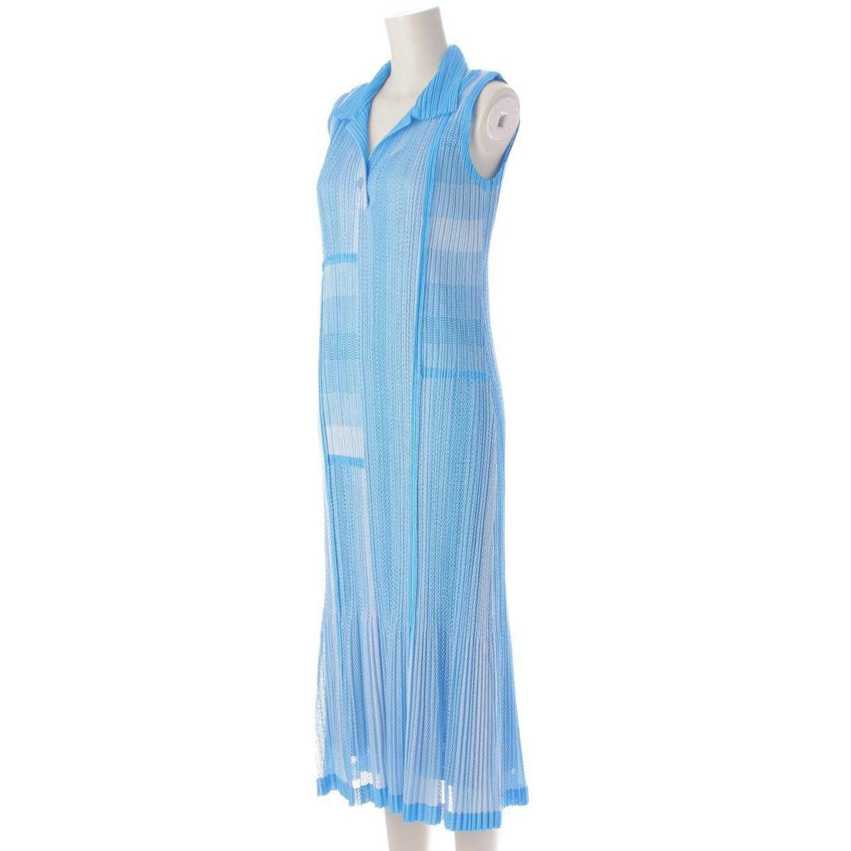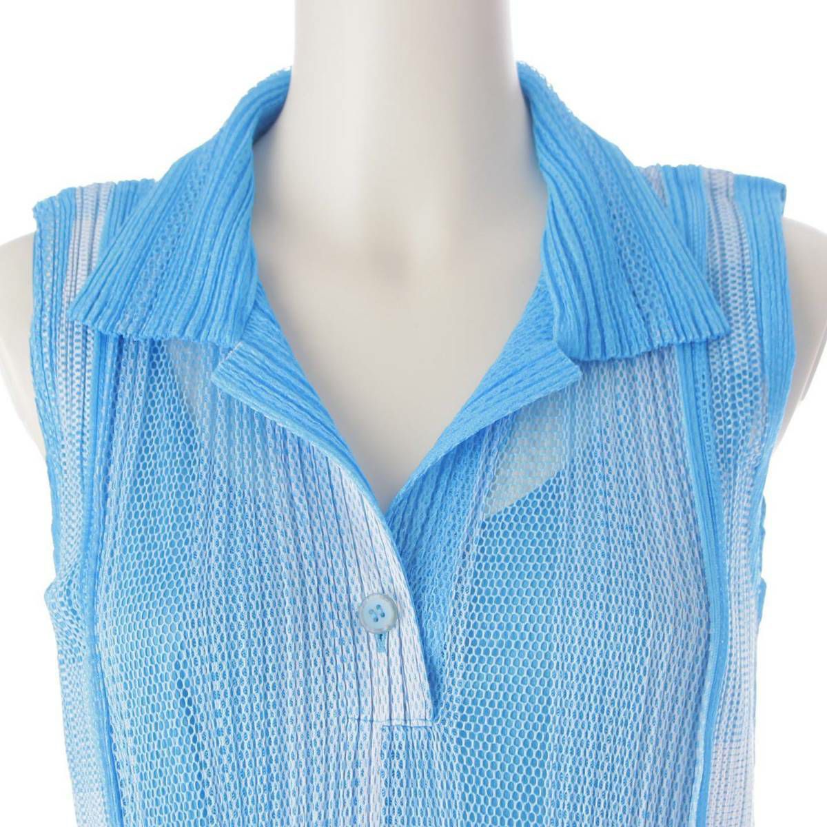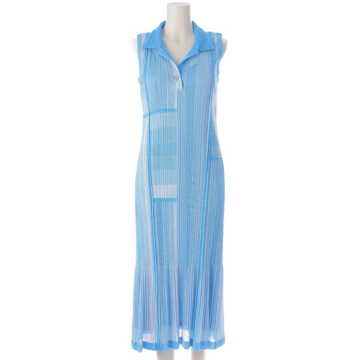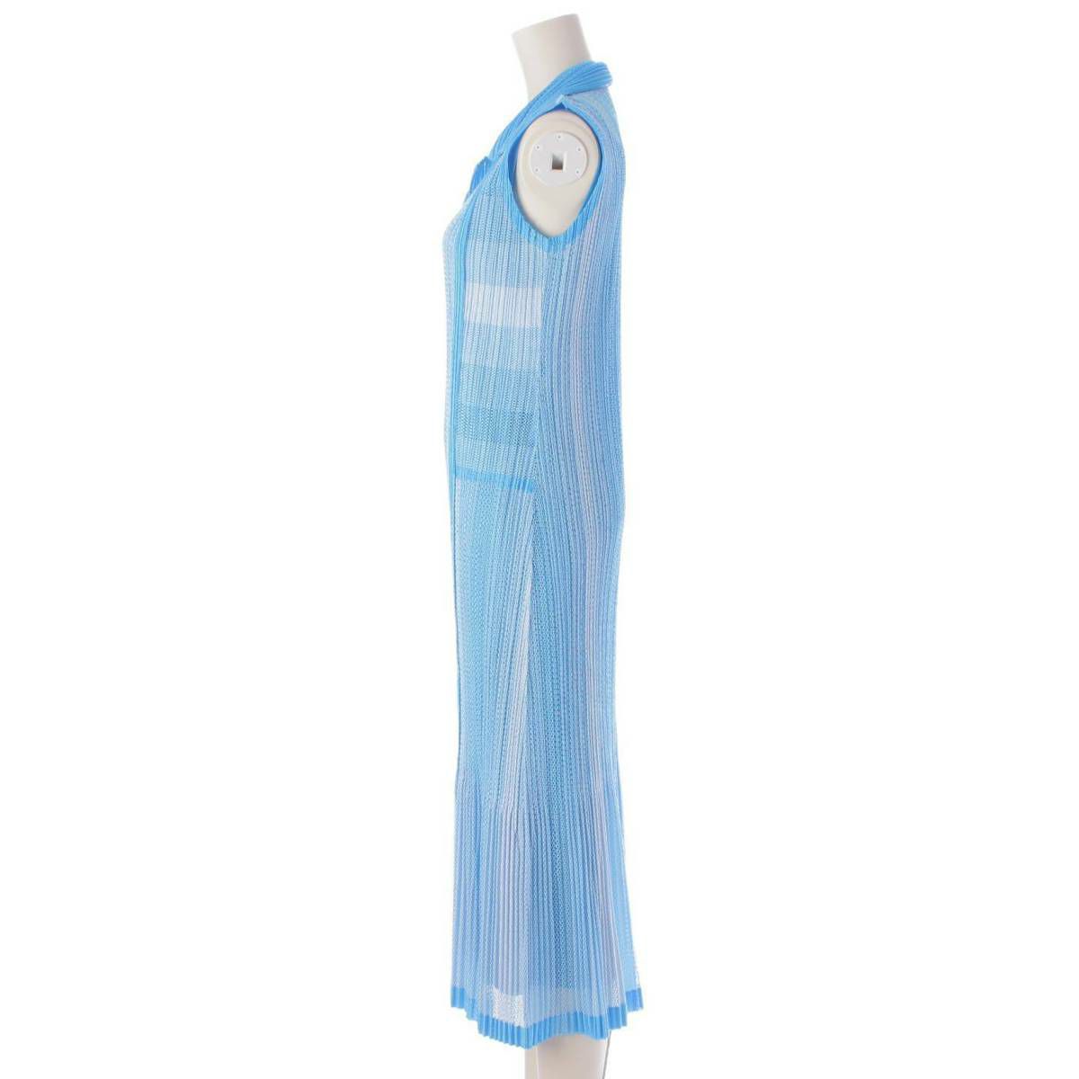 イッセイミヤケ プリーツプリーズ メッシュ ノースリーブ ワンピース PP71-JH724 ブルー×ホワイト 3