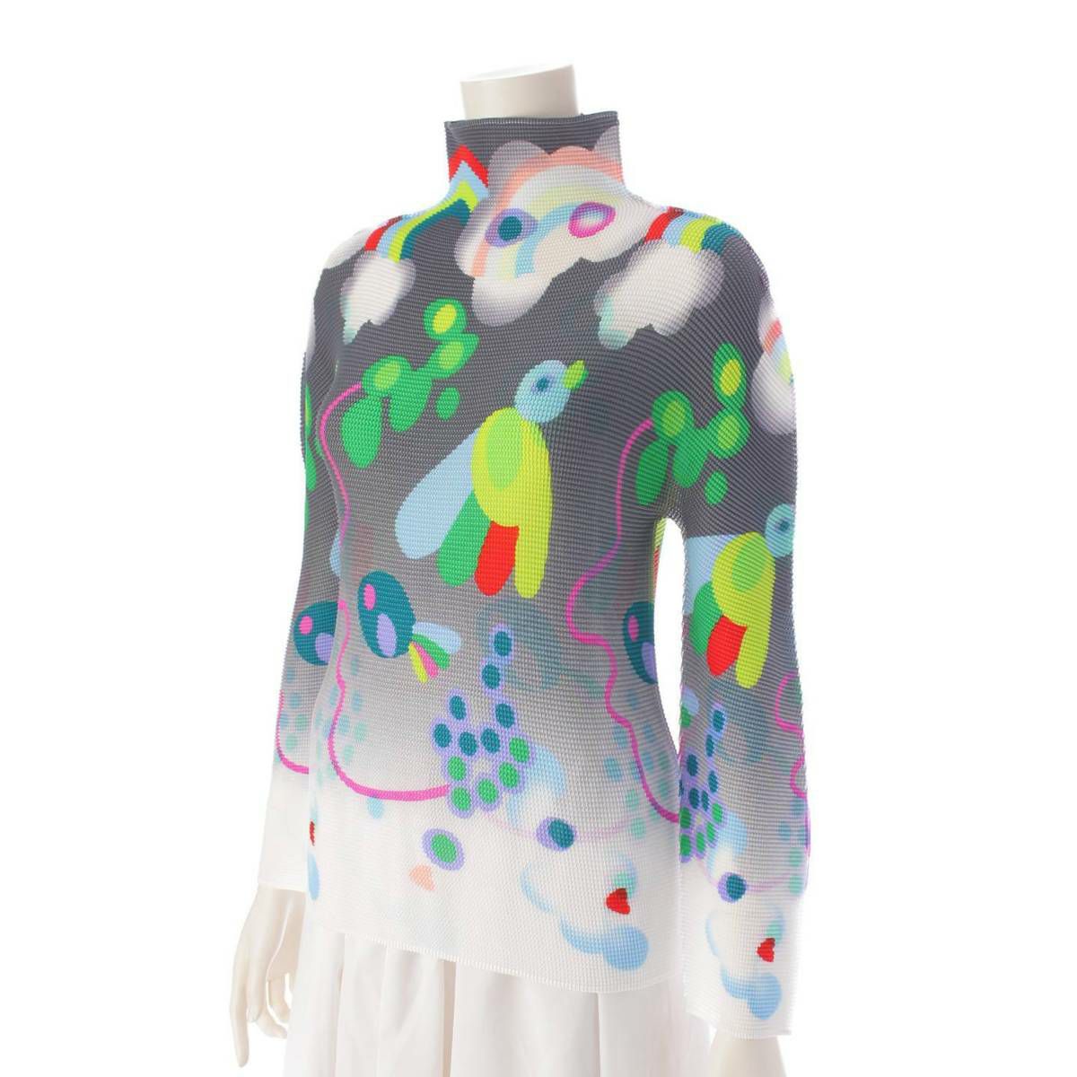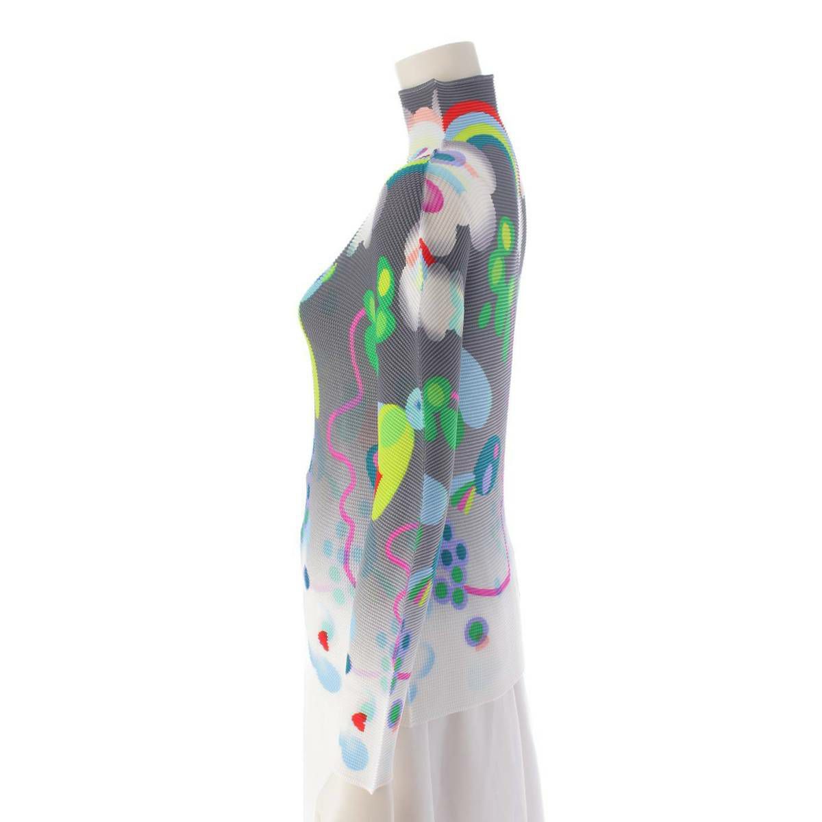 イッセイミヤケ Issey miyake ミーイッセイミヤケ 23AW ワッフルプリーツ 長袖 カットソー グレー×マルチカラー