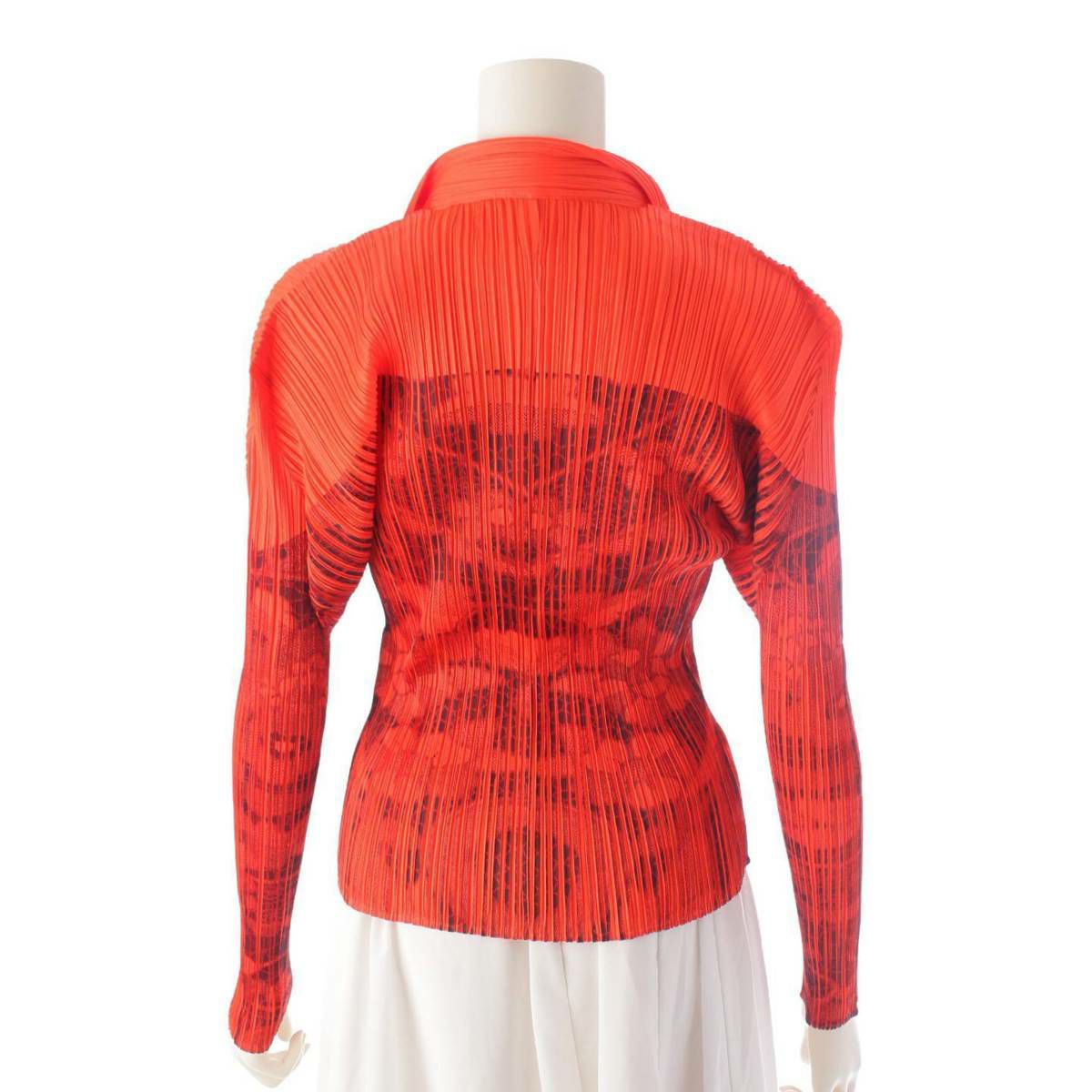 イッセイミヤケ Issey miyake プリーツプリーズ フラワー 転写 プリント シャツ ブラウス PP86-JK424 オレンジ 3