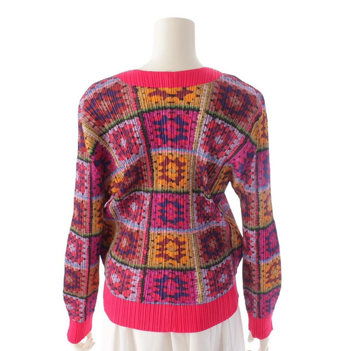 イッセイミヤケ Issey miyake プリーツプリーズ パッチワーク 前ボタン カーディガン トップス PP53-J0653 ピンク 3