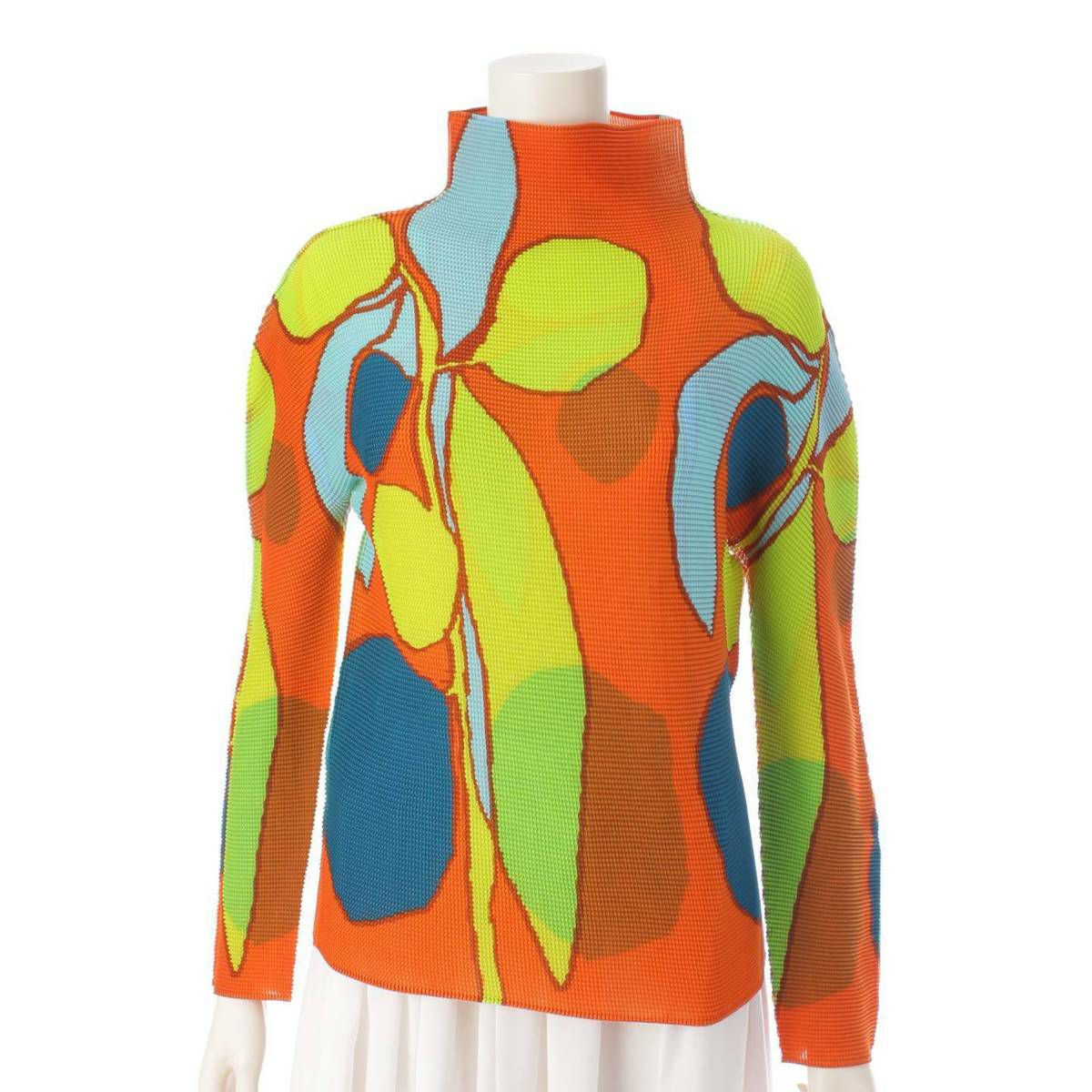 イッセイミヤケ Issey miyake 23AW HARVEST 植物柄 長袖 ハイネック プリーツ トップス MI33FJ931 オレンジ