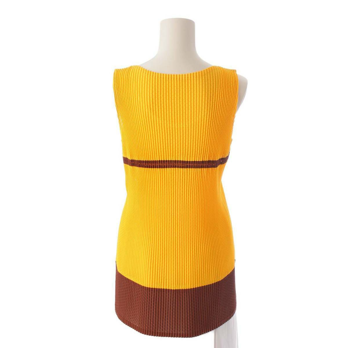 イッセイミヤケ ノースリーブ チュニック トップス IM82-JH913 イエロー×ブラウン M