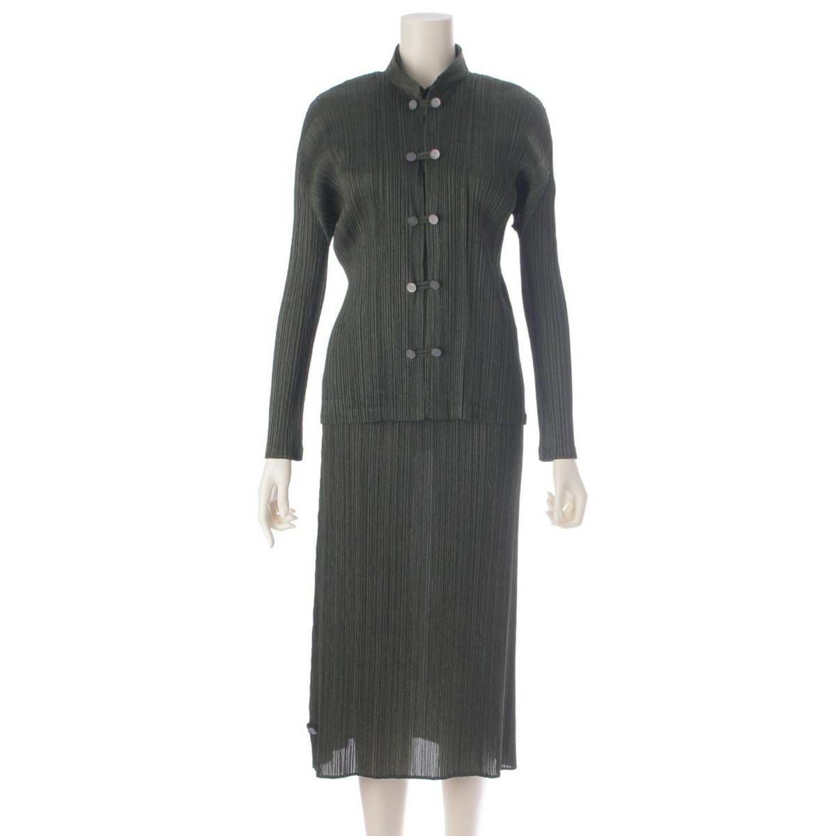 他の画像を見る イッセイミヤケ Issey miyake プリーツプリーズ チャイナ スリーピース スカート セットアップ モスグリーン 在庫切れ お気に入りに登録する ¥ 66,000 税込 円 60,000円