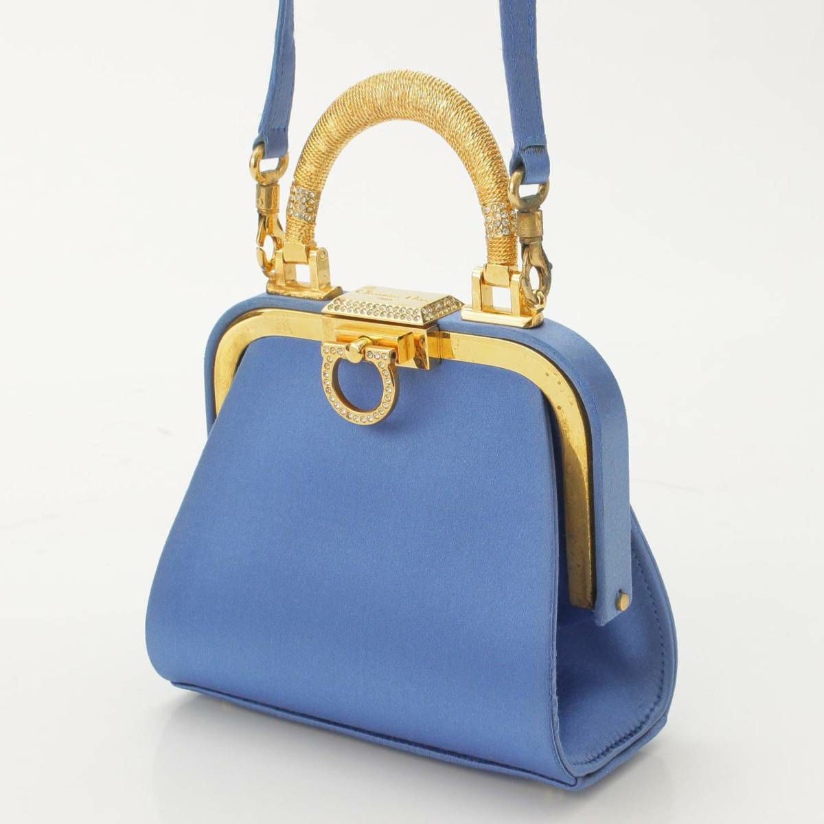 クリスチャンディオール ヴィンテージ ラインストーン サテン がま口 2WAY ショルダー ハンドバッグ 29205 ブルー