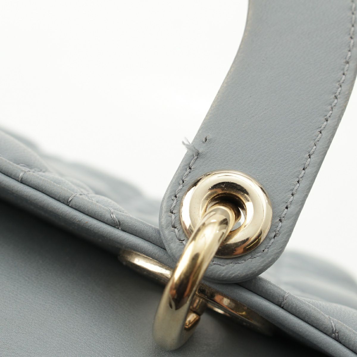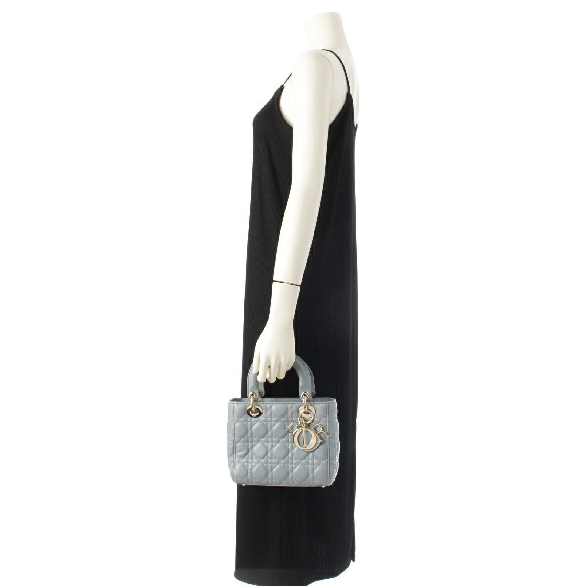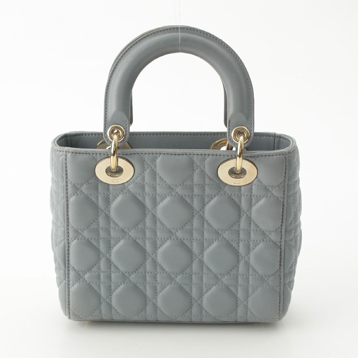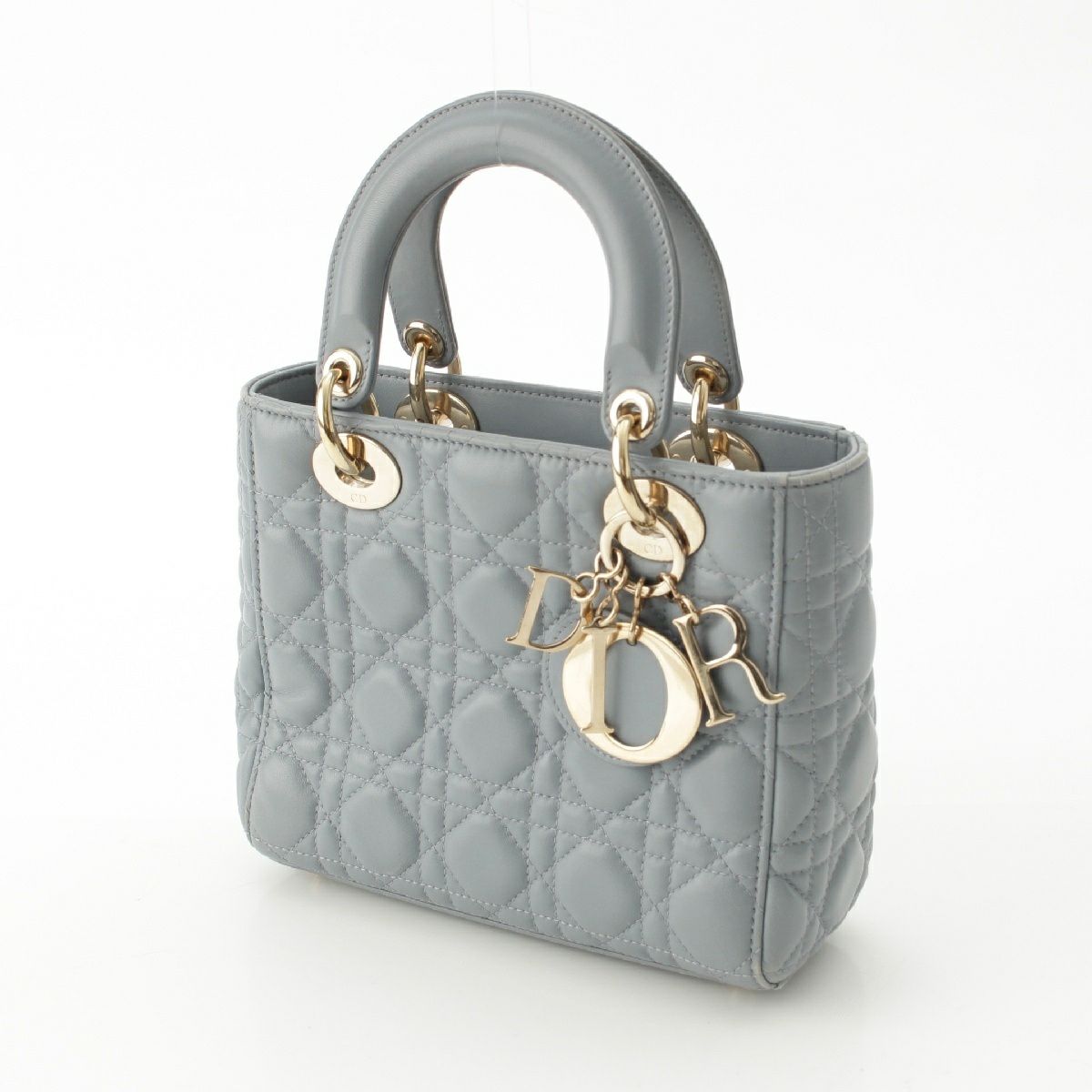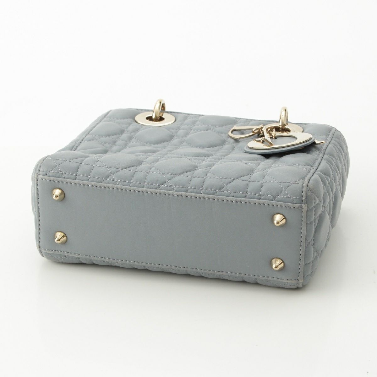 クリスチャンディオール Lady Dior カナージュ ラムスキン ハンドバッグ ブルー グレー