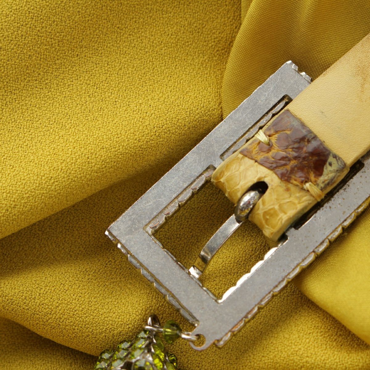クリスチャンディオール 2007年AW ガリアーノ期 ビジュー スネークベルト ワンピース ドレス イエロー 38