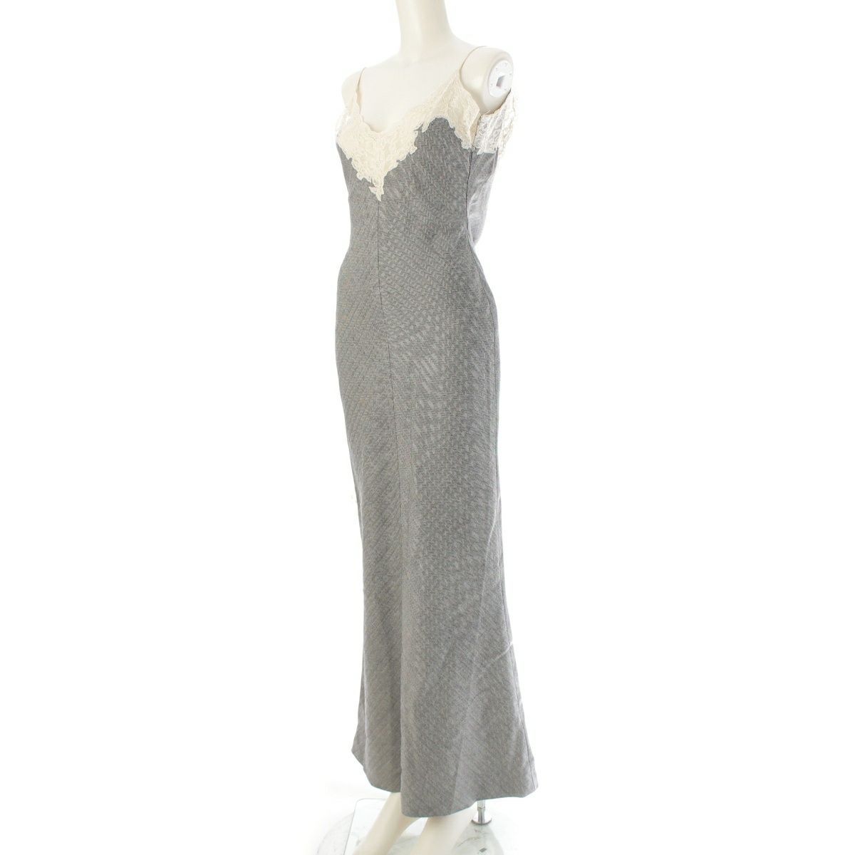 クリスチャンディオール ウール シルク ガリアーノ期 レース ドレス ヘリンボーン ワンピース グレー 38