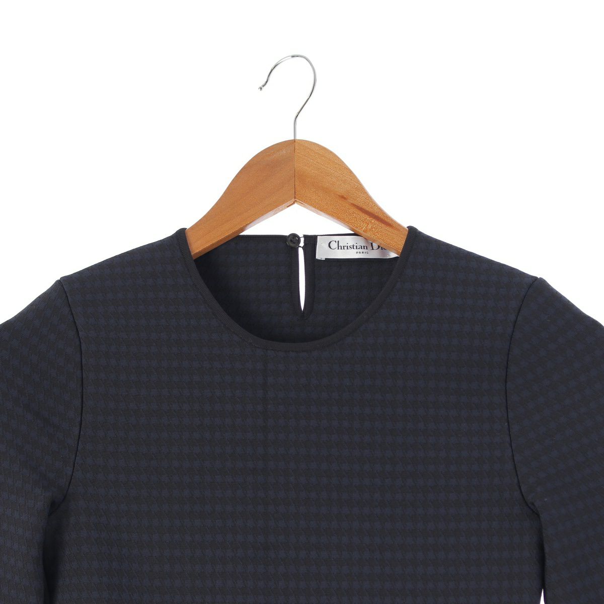 クリスチャンディオール ビスコース ジャージー BEE刺繍 千鳥柄 七分丈 フレア ドレス ワンピース 044R10AM501 ブラック ネイビー 34