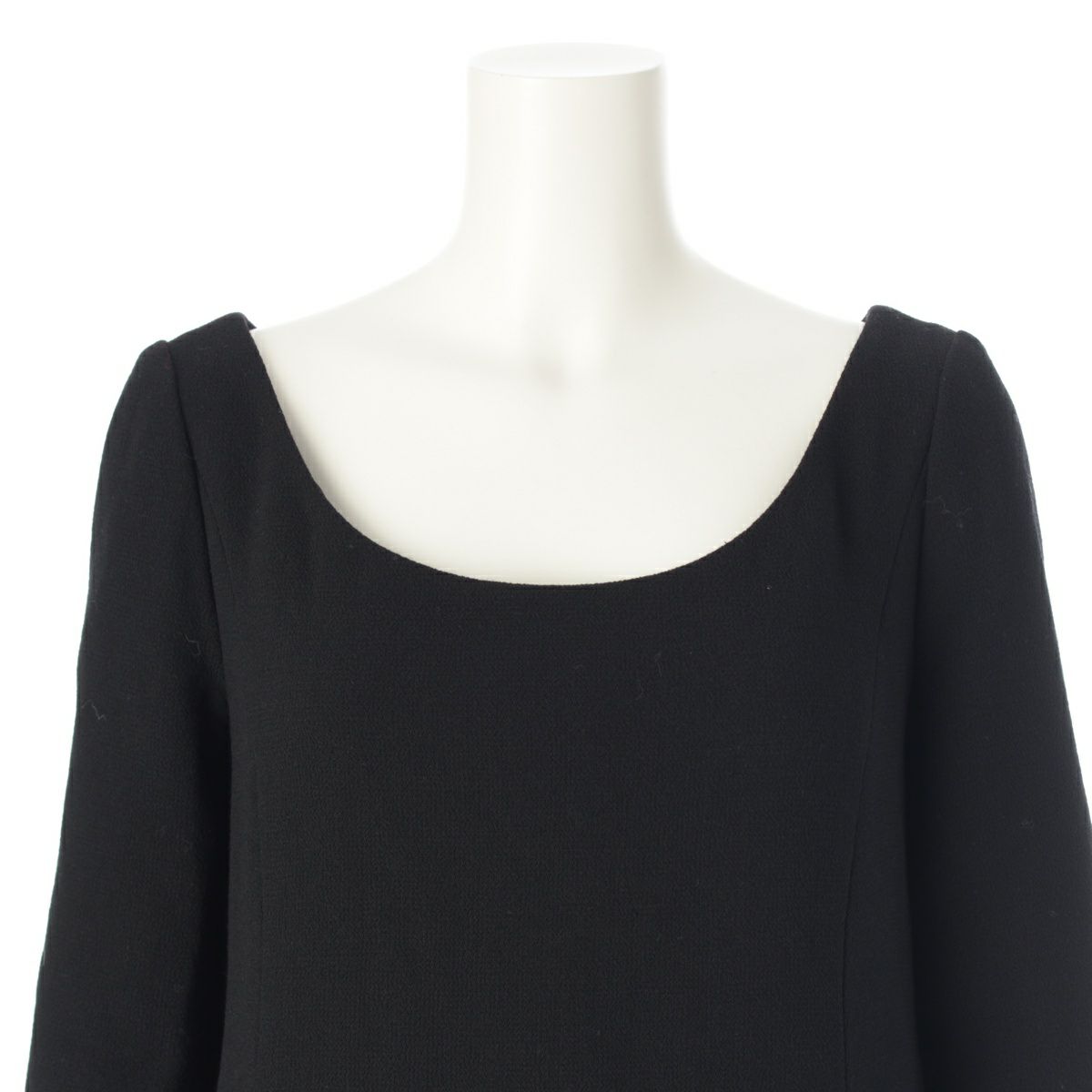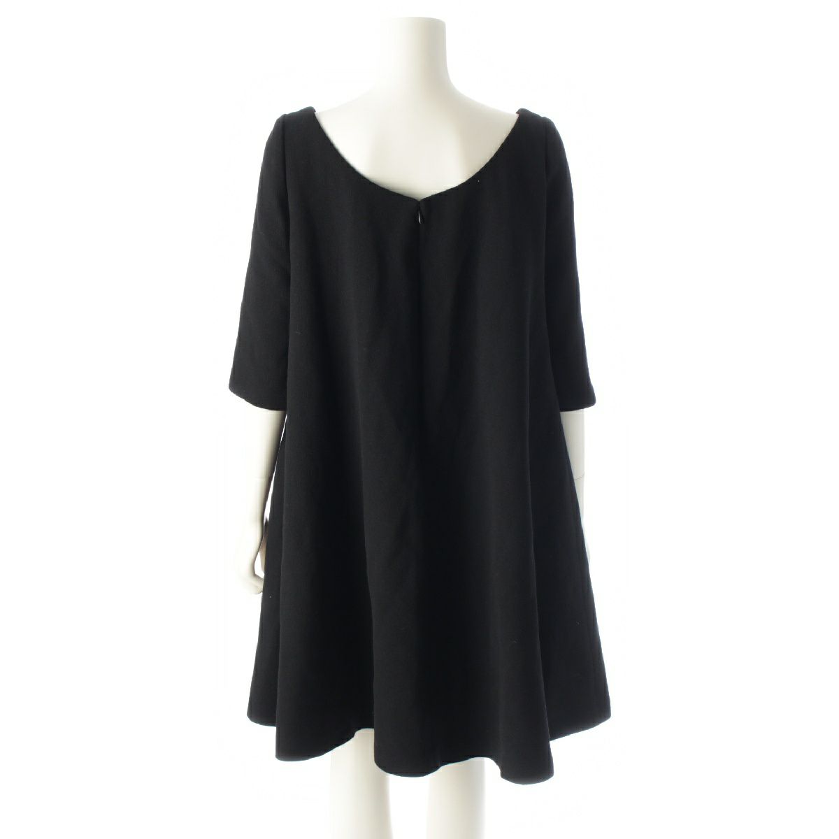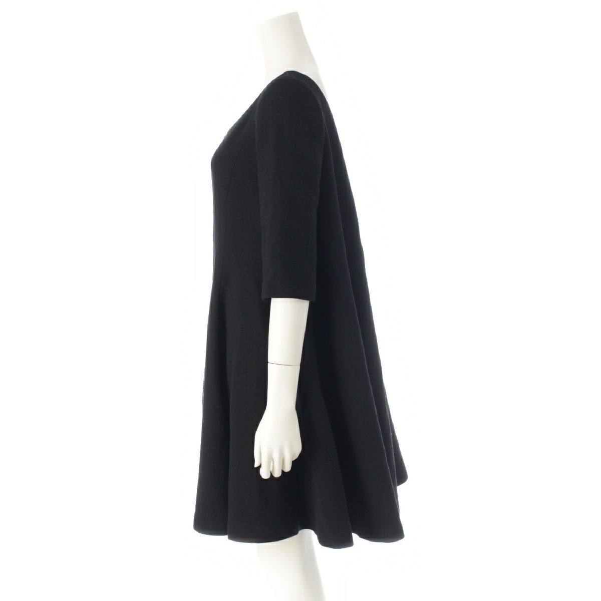 クリスチャンディオール ヴァージンウール デコルテ フレア ミニ ワンピース ドレス 7E21637A1106 ブラック 36