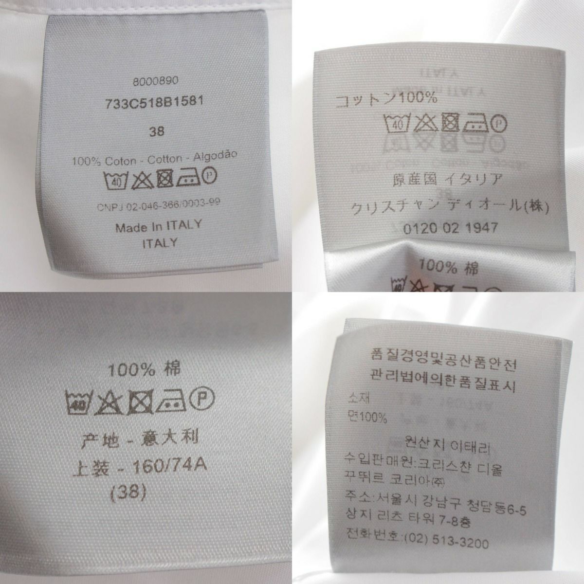 ディオール DIOR メンズ コットン ビー クラシック シャツブラウス 733C518B1581 ホワイト 38