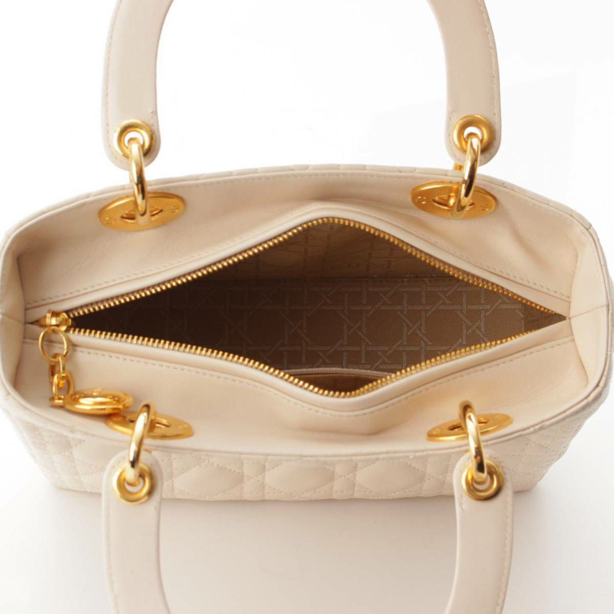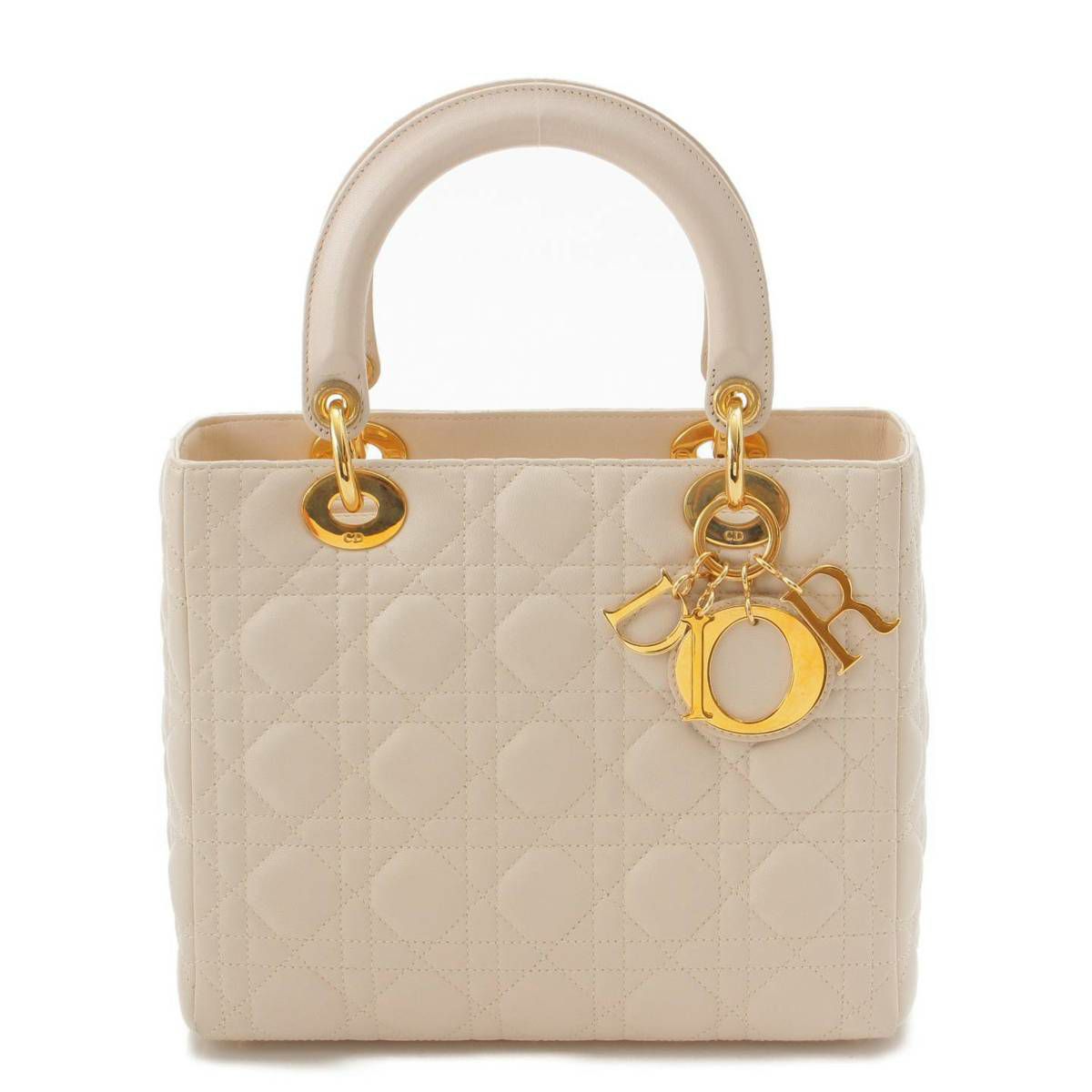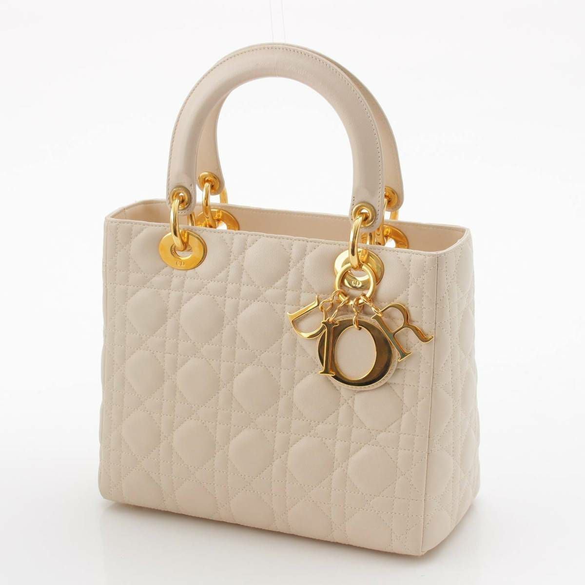 クリスチャンディオール Christian Dior レディディオール ミディアム カナージュ レザー ハンドバッグ ホワイト